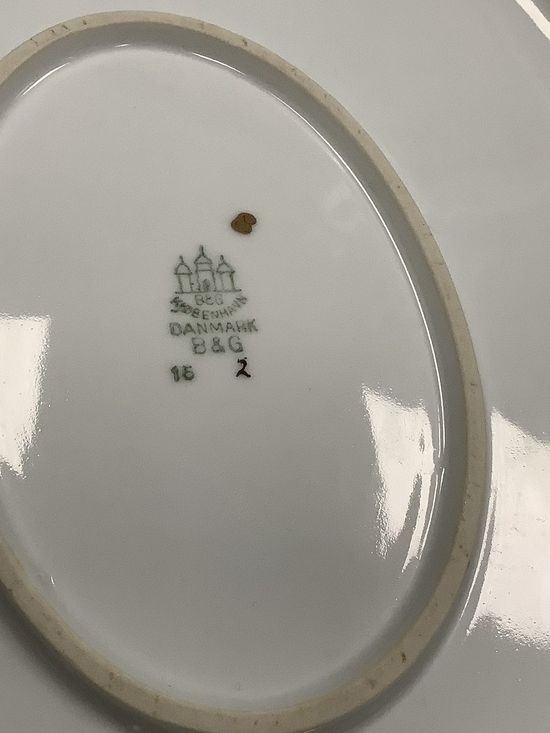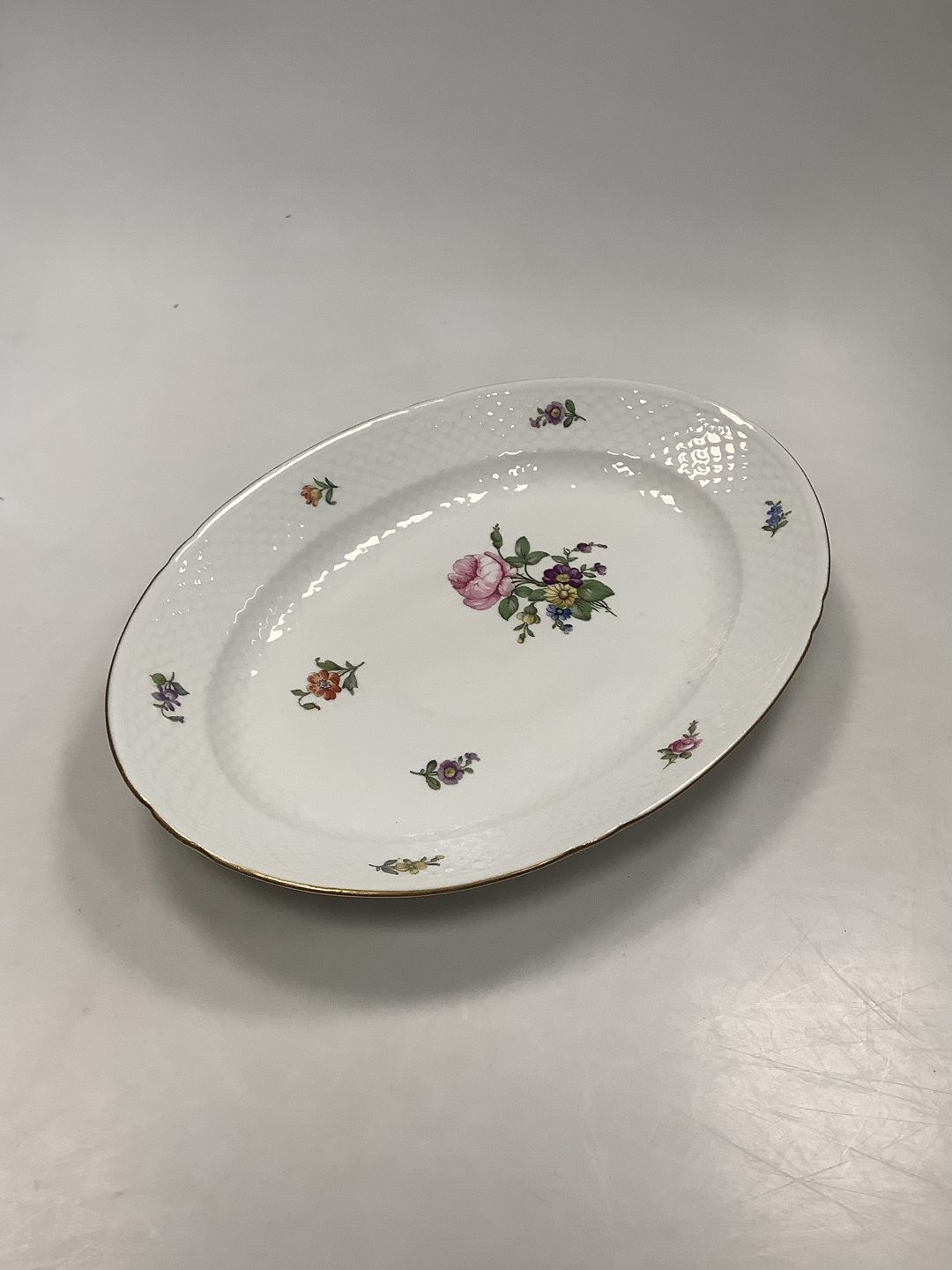 Bing and Grøndahl Saksisk Blomst, White Stort ovalt fad No 15/315. Measures 41 cm / 16 9/64 in. x 29 cm / 11 27/64 in.