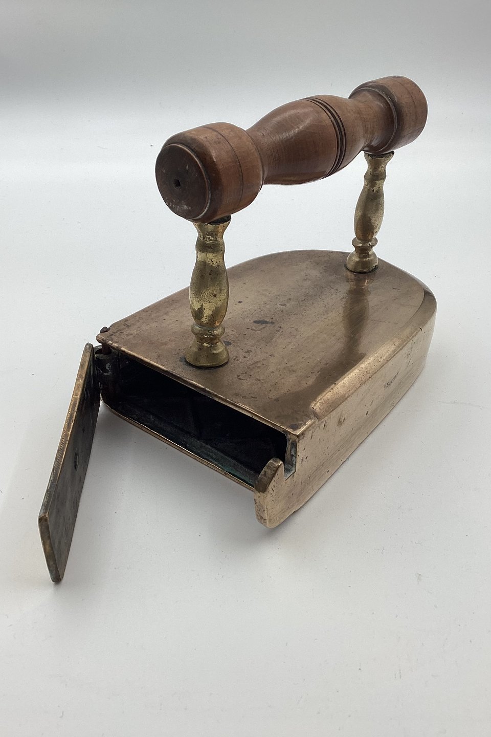 Skandinavisk butsnudet strygejern i messing fra slutningen af 18. årh.