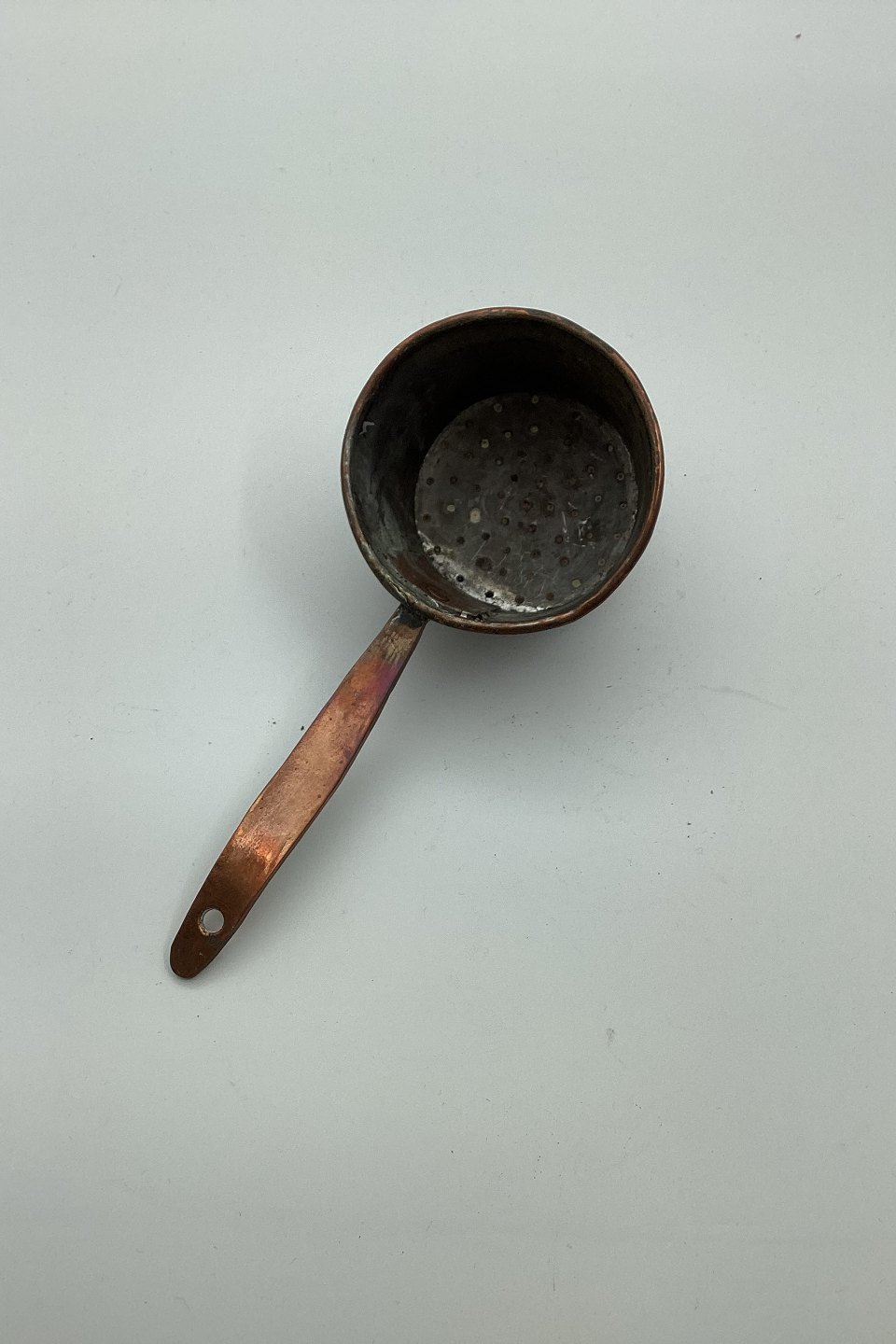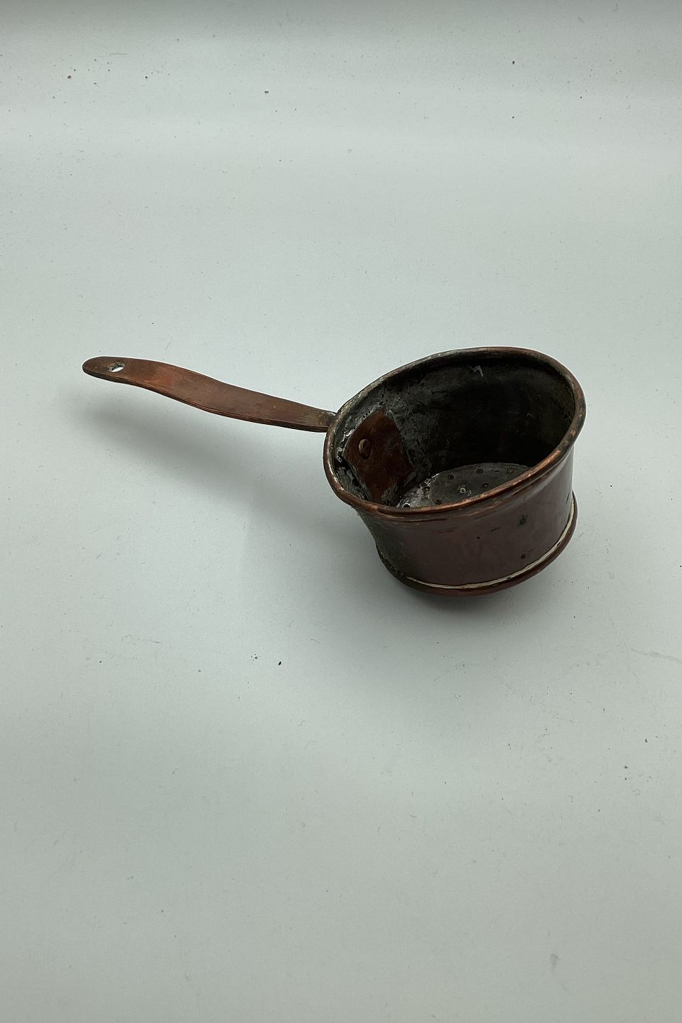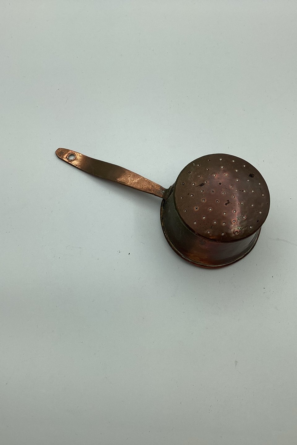 Antik strøske / beholder i kobber fra slutningen af 19. århundrede. I god stand. Mål: 18,5 cm lang (7.28 inch)