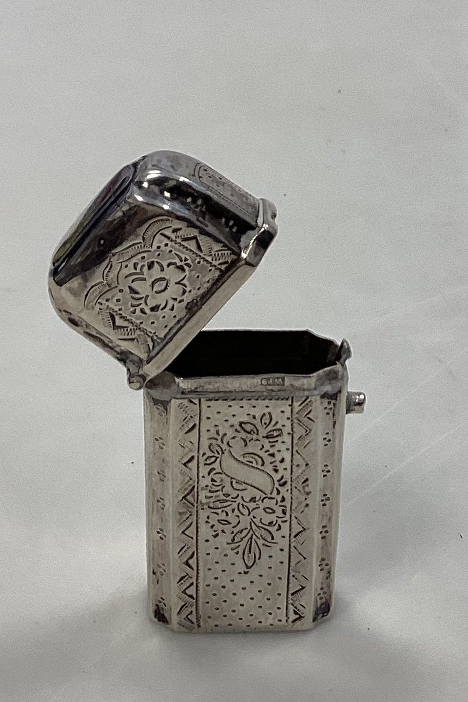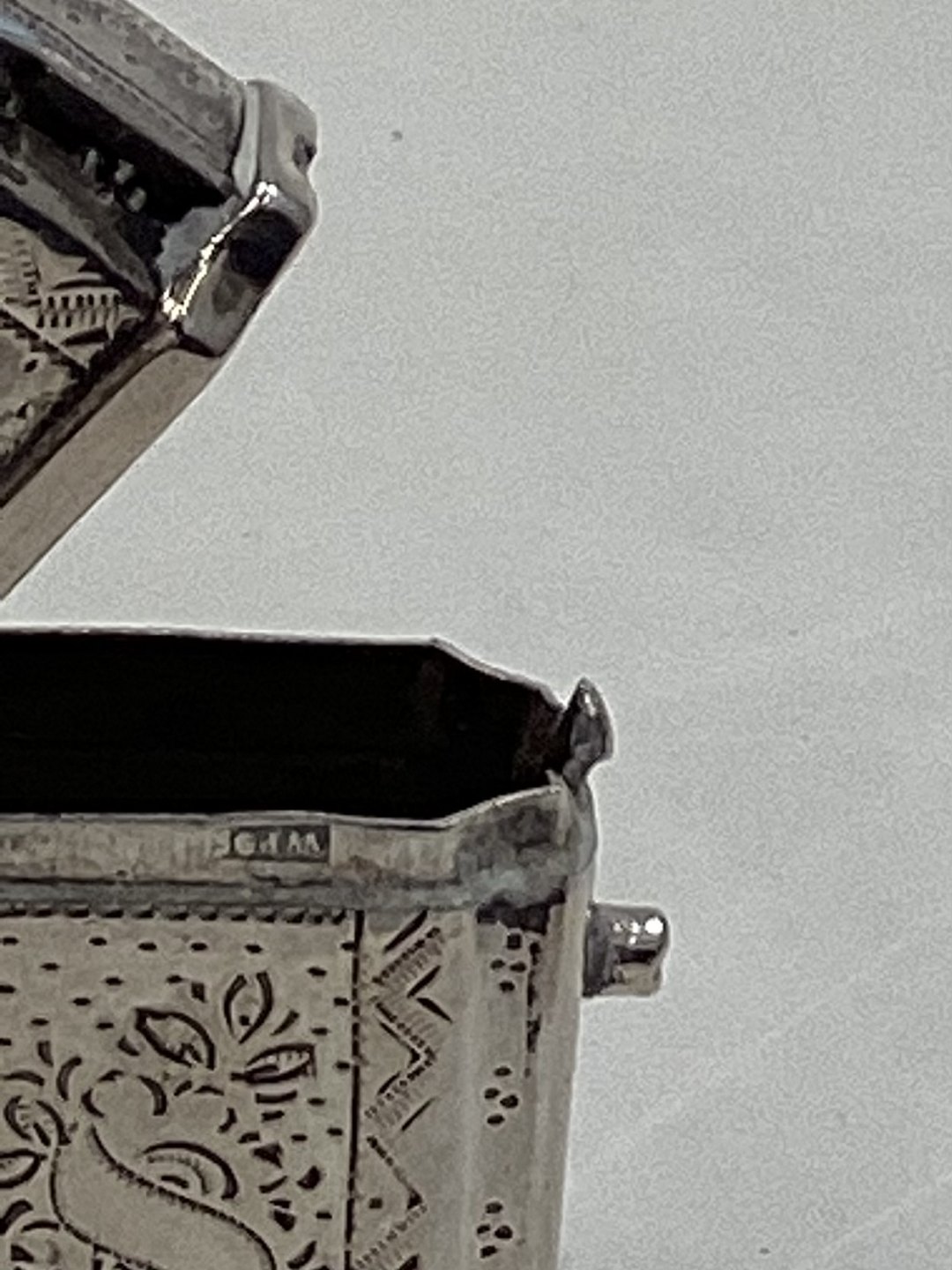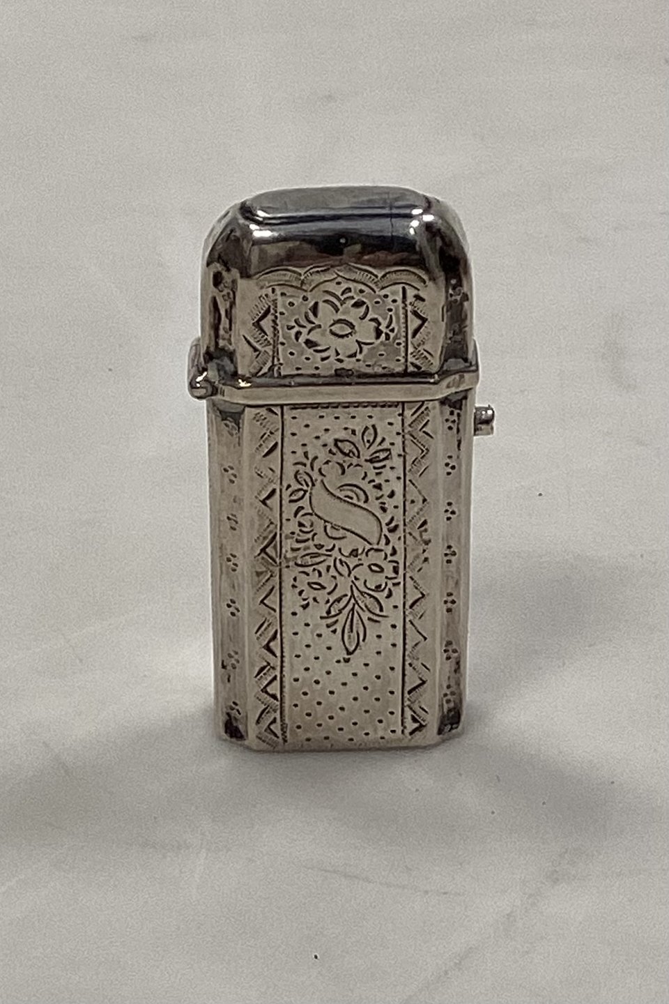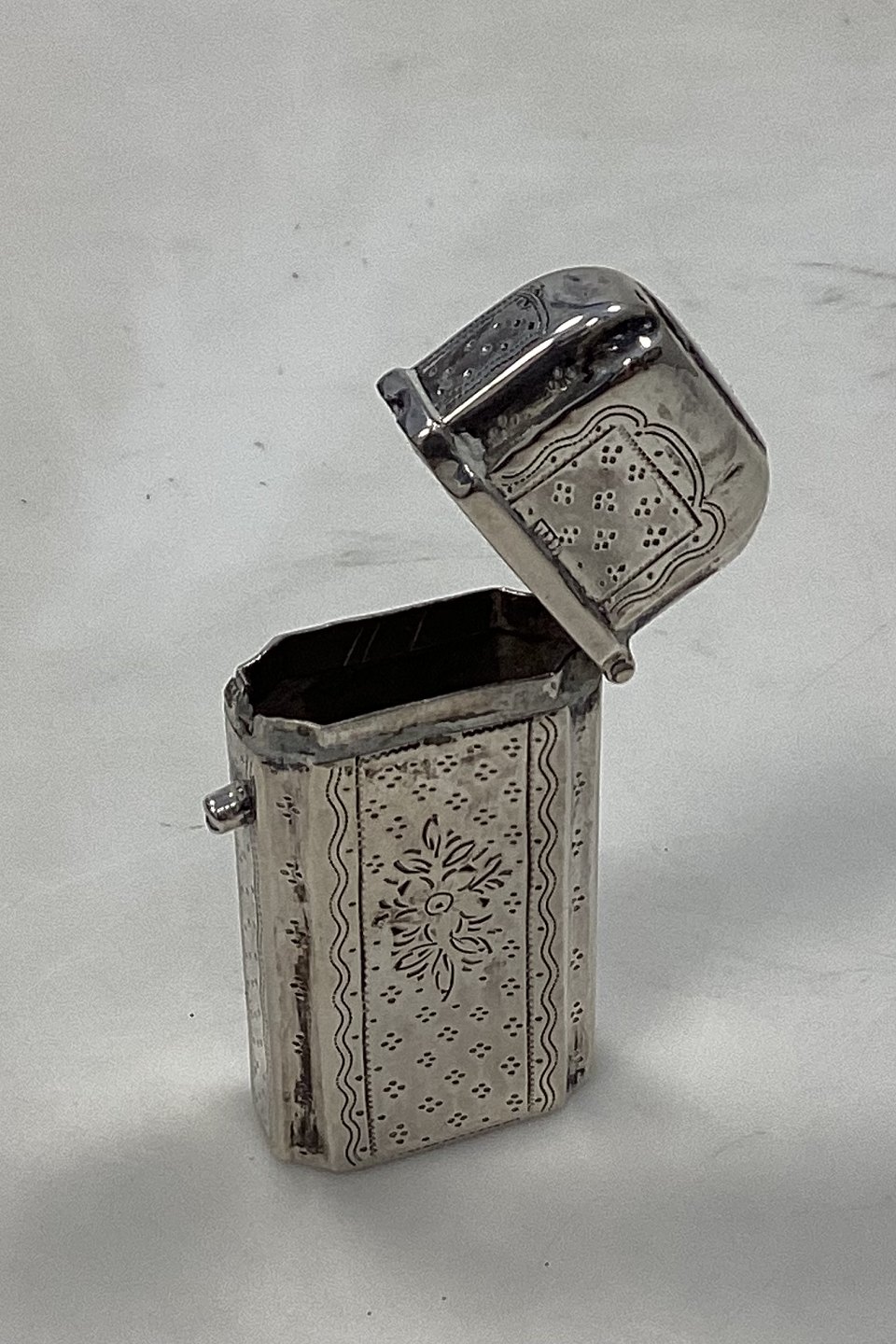 Silver container box for matches. Made in the second half of the 19th century. Silver marked. H. 6.6 cm (2.55 inch)