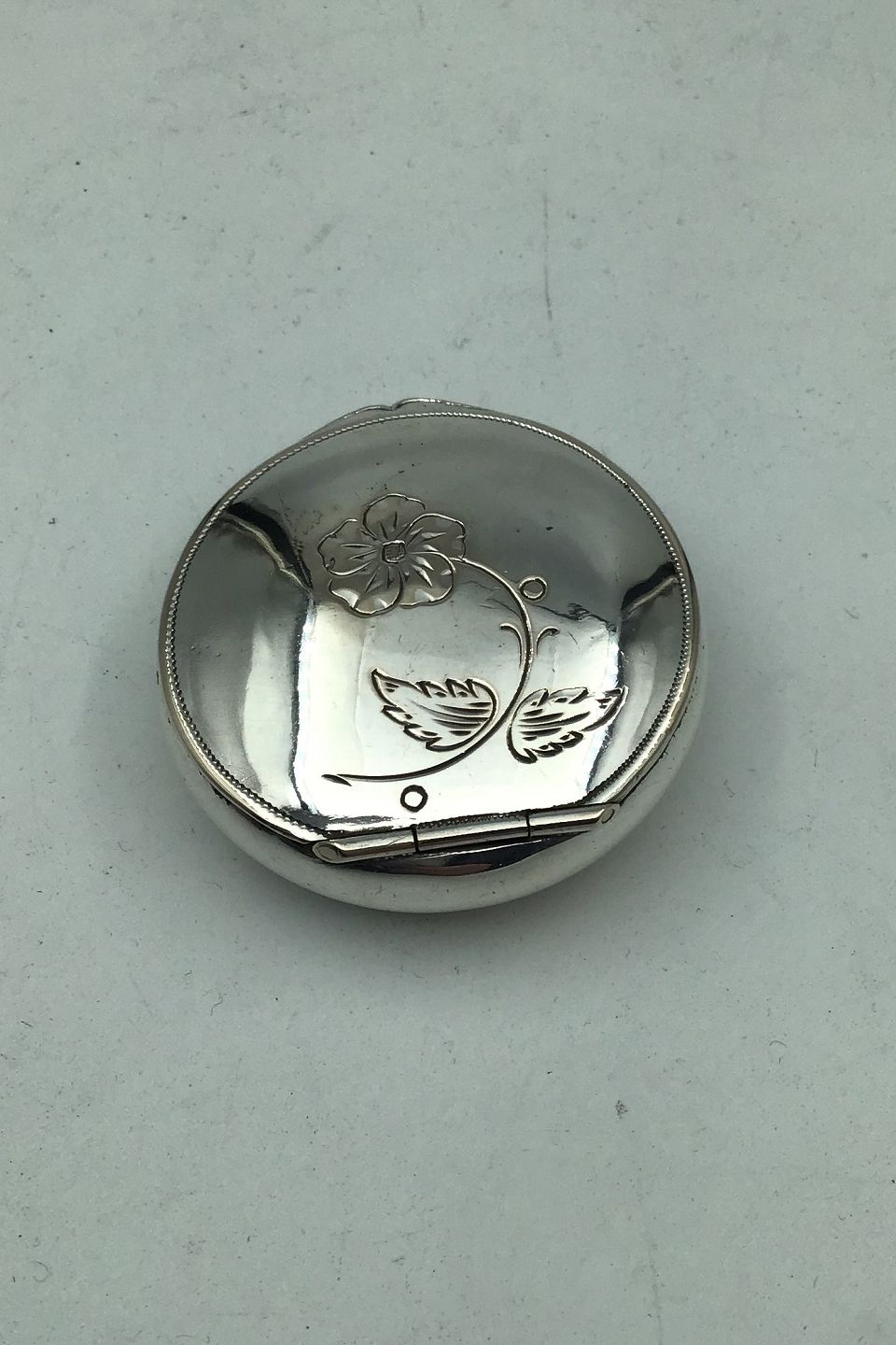 Bernhard Hertz Silver Pill Box (1934) Measures Diam 4.2 cm (1.65 inch) Weight 15.3 gr/0.54 oz Gilt inside Flower engraved