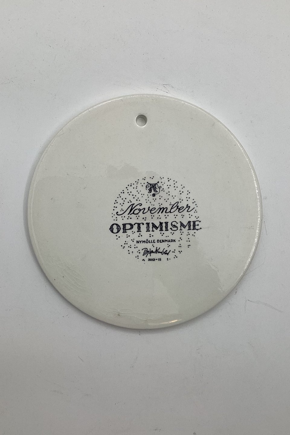 Monthly plate in faience for November - OPTIMISME (contact). Designed by Bjørn Wiinblad for Nymølle. In perfect condition. The factory mark on the back. Dimensions: 15 cm (5.90 inches)