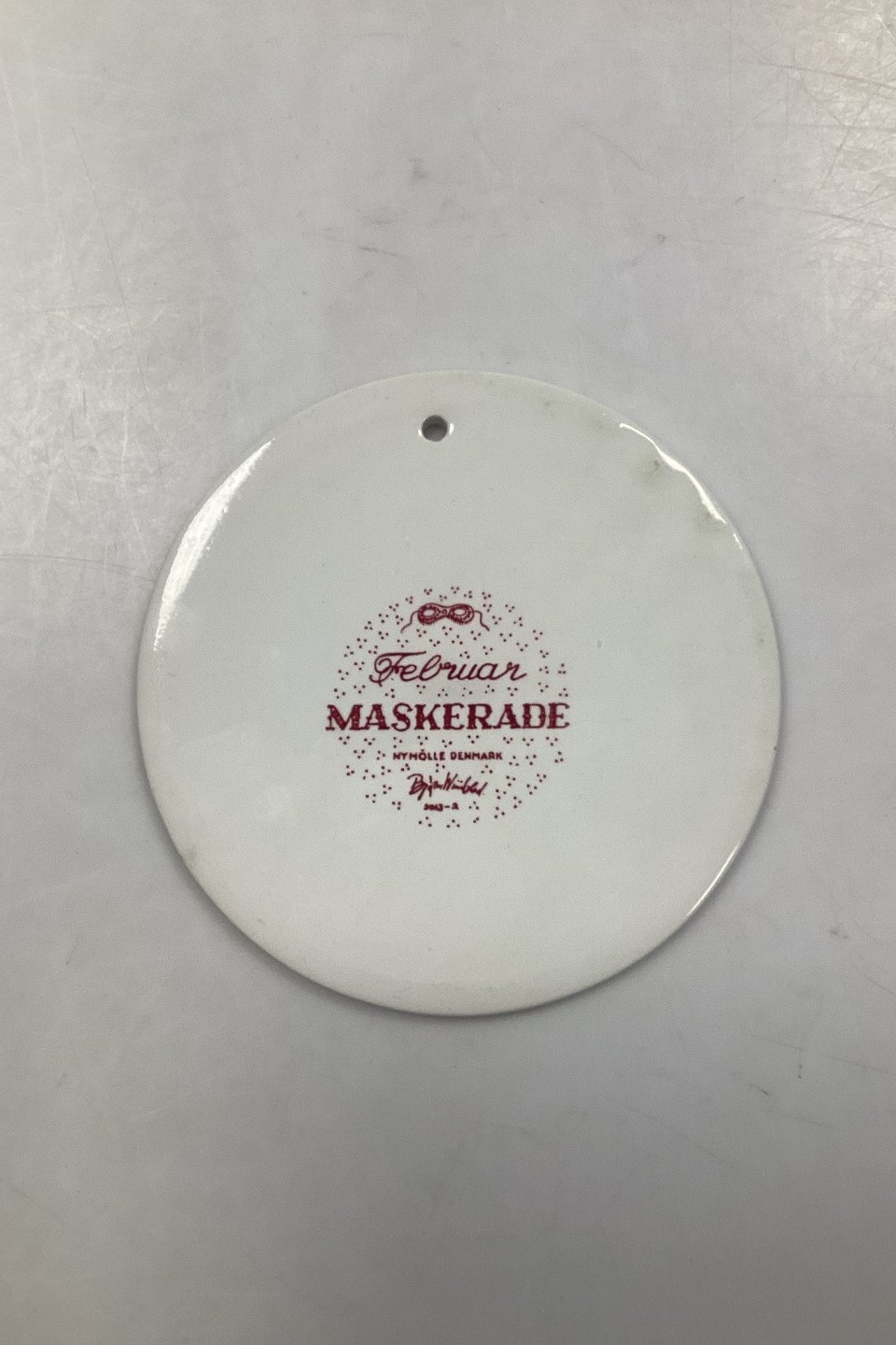 Red monthly plate in faience for February - MASKERADE (Masquerade). Designed by Bjørn Wiinblad for Nymølle. In good condition. The factory mark on the back. Dimensions: 15 cm (5.90 inches)