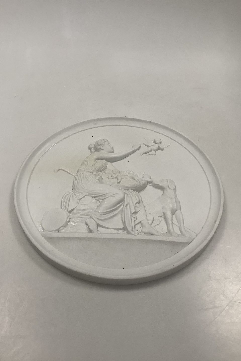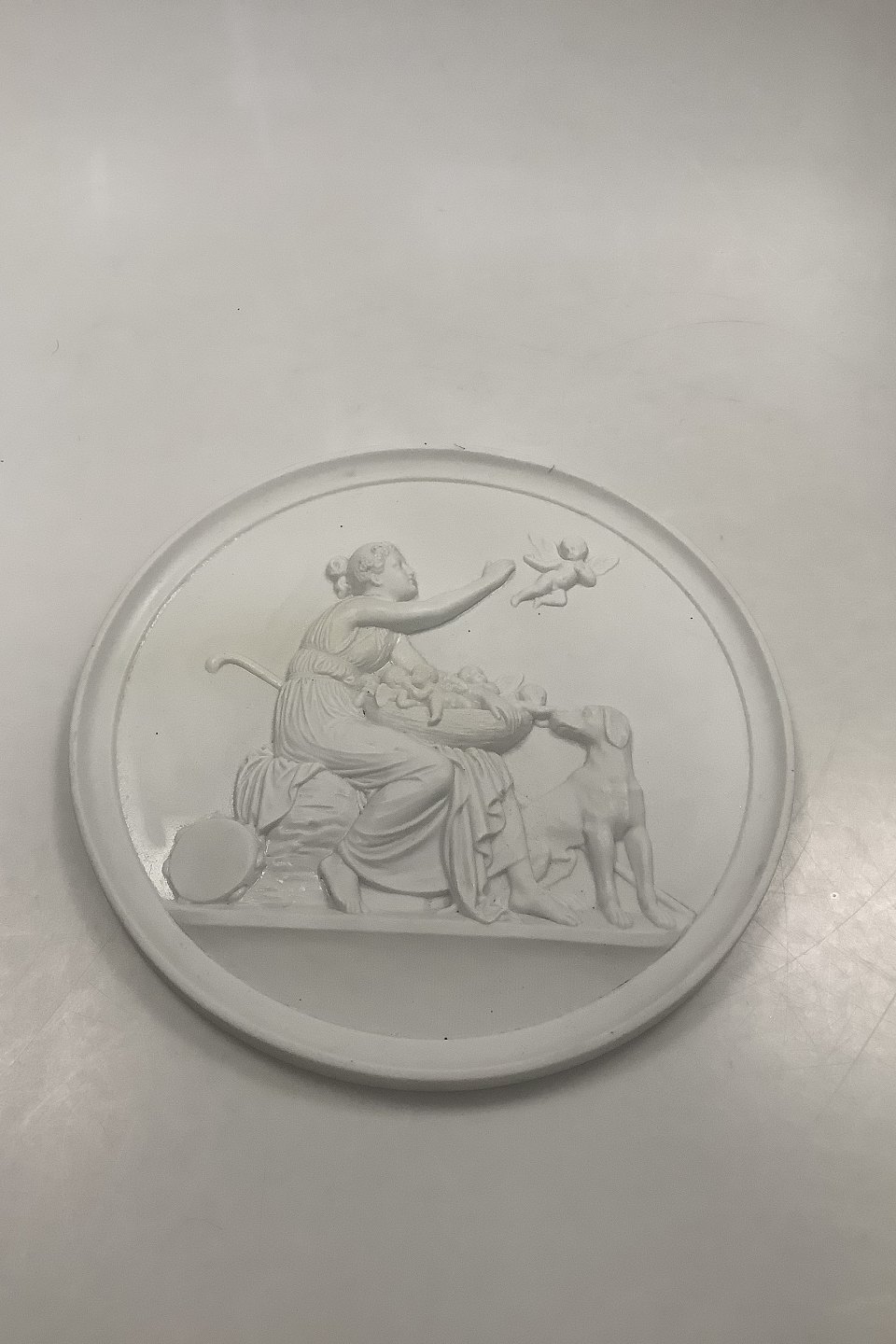 Bing og Grøndahl Biscuit Platte Hyrdinde med en Amorinerede. No 110. Kopi af Christian Christensen fra 1845 after Thorvaldsens original fra Rom 1831. Måler 28,5cm / 11.22 inch