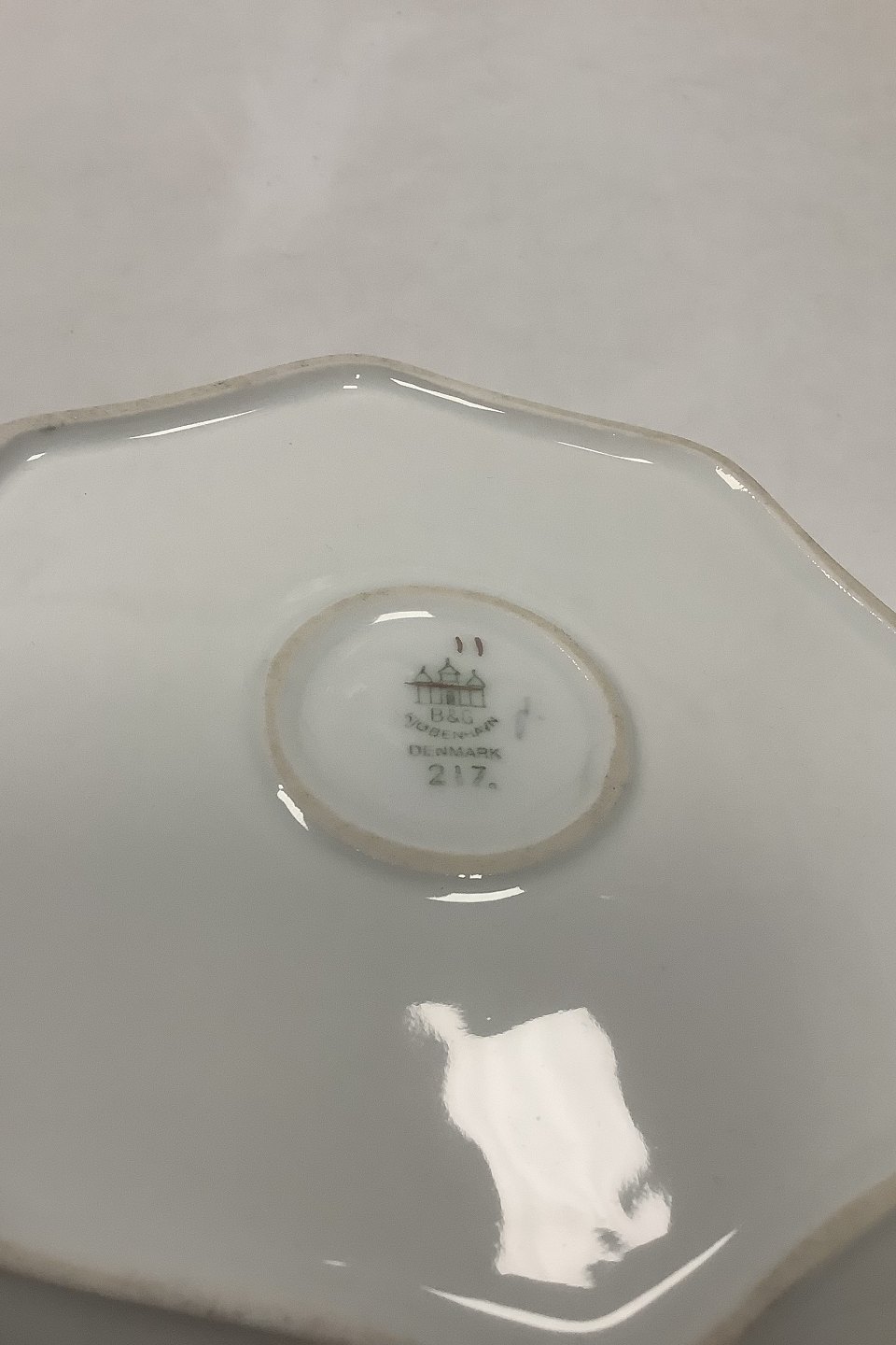 Bing and Grondahl Seagull with Gold Octogonal Dish with Seahorse No 21. Measures 21 cm / 8 17/64 inch