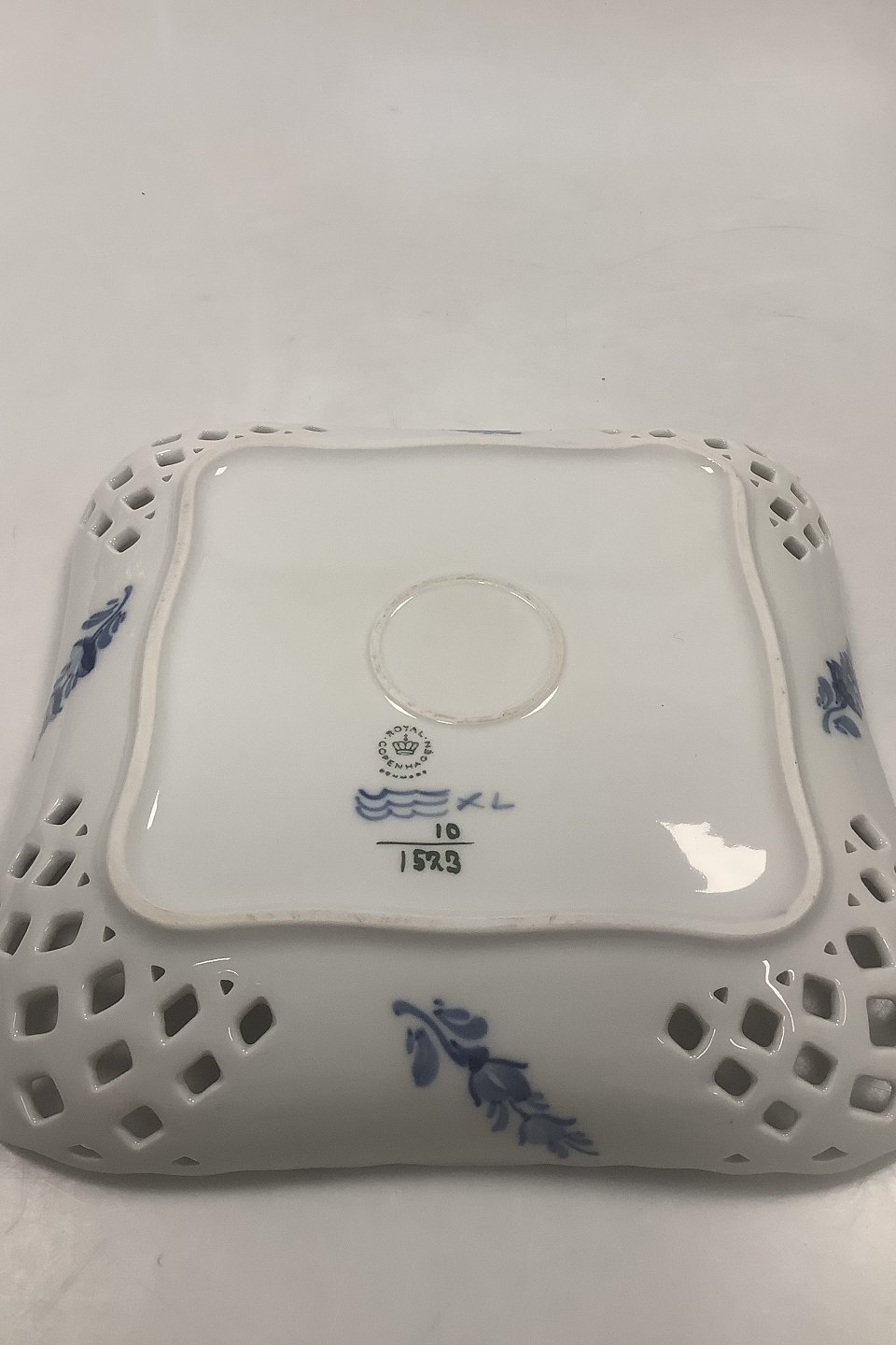 Royal Copenhagen Blå Flower Curved Square Dish with Pierced Border No 1523. Measures 23 cm / 9 1/16 in. x 23 cm / 9 1/16 in.