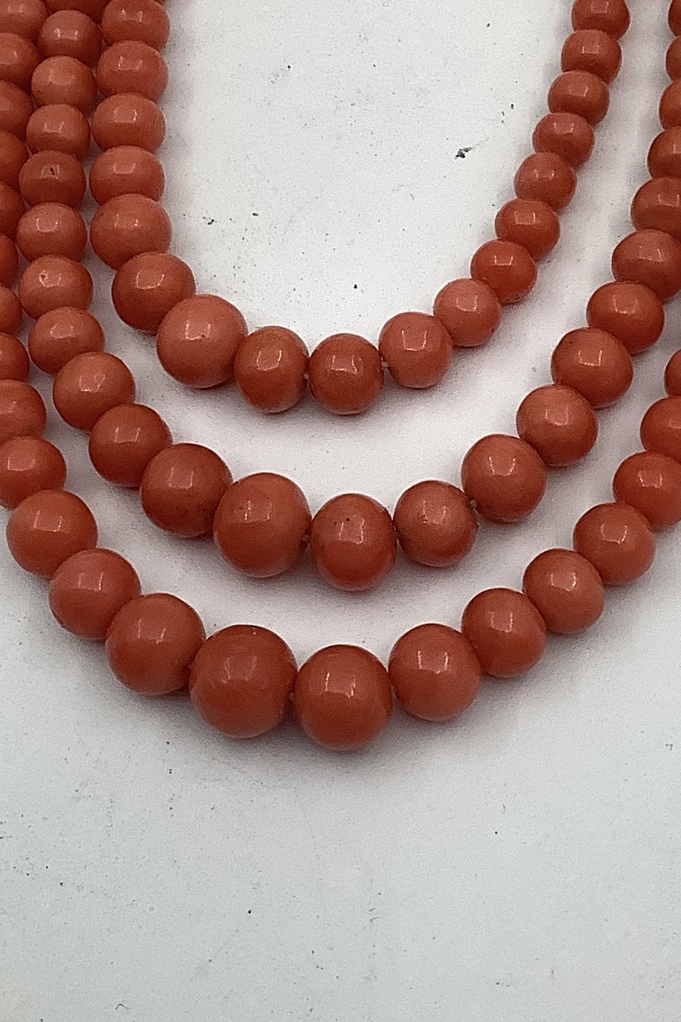 Antique 3 Row Red Coral Pearl Necklace