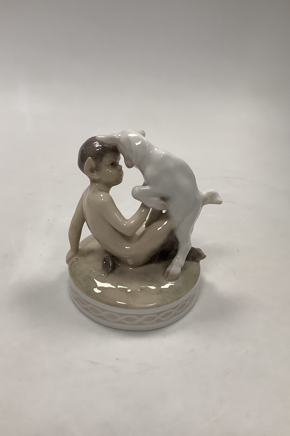 Royal Copenhagen Figur Faun med Gedekid No. 498. Designet af Chr. Thomsen i 1906.
