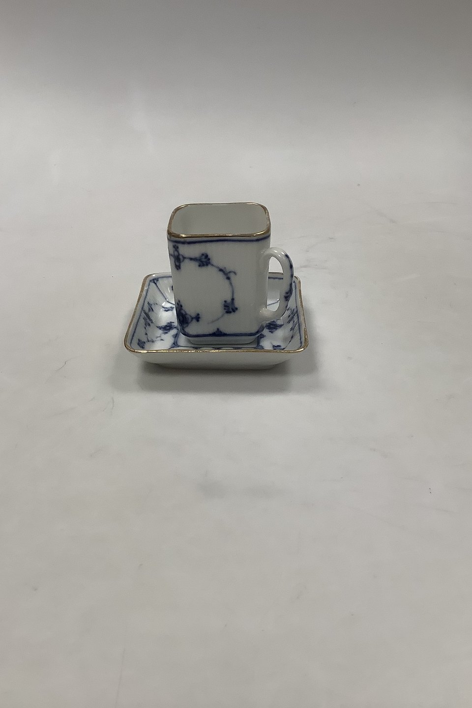Bing og Grøndahl Blåmalet / Musselmalet Firkantet kop med underkop med guld