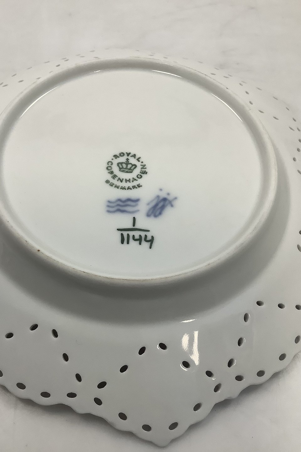 Royal Copenhagen Blue Fluted Full Lace Plate No 1144. 17.5 cm dia (6 57/64"). Has a chip on the edge.