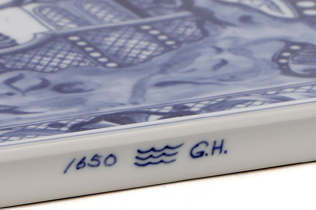 Royal Copenhagen Rectangular porcelain tray/Tray Table Gerhard Henning, blue underglaze Marked 1650 GH. 44 × 31,5 cm (17.32 x 12.40 inch)