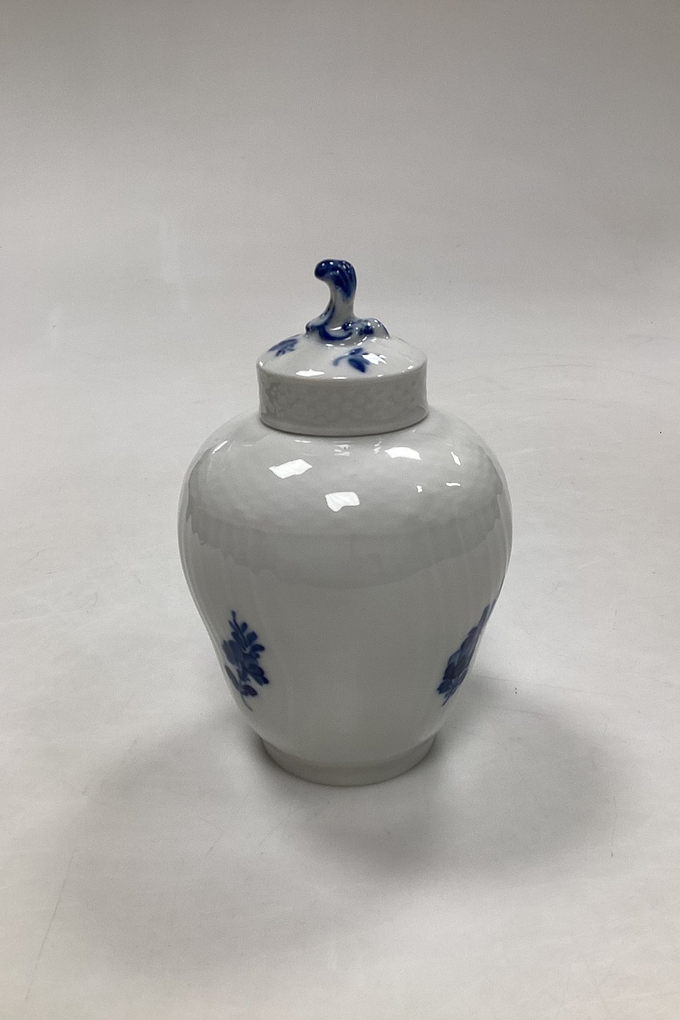 Royal Copenhagen Blue Flower Curved Tea Canister with Lid No. 1684. Measures 13 cm / 5.1 in.