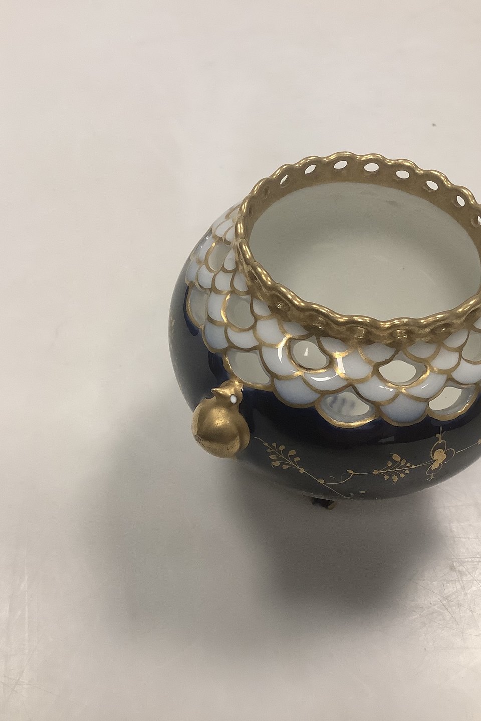 Royal Copenhagen Blue Fluted Full Lace Little Vase No 1043 in Rare Dark Blue and Gold.