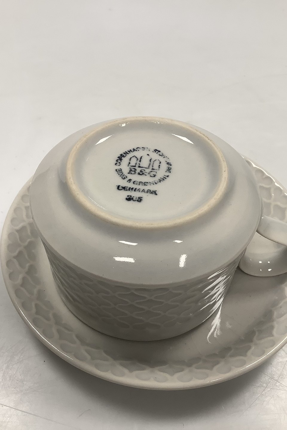Bing and Grondahl/Kronjyden Stonware White Cordial Coffee Cup and Saucer No 305. Cup measures 6 cm / 2 23/64 in. x 8 cm / 3 5/32 in.