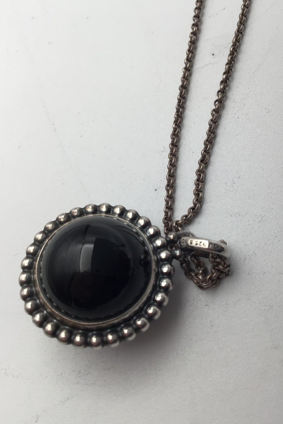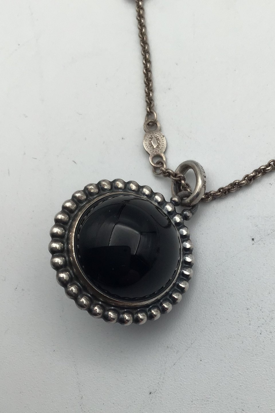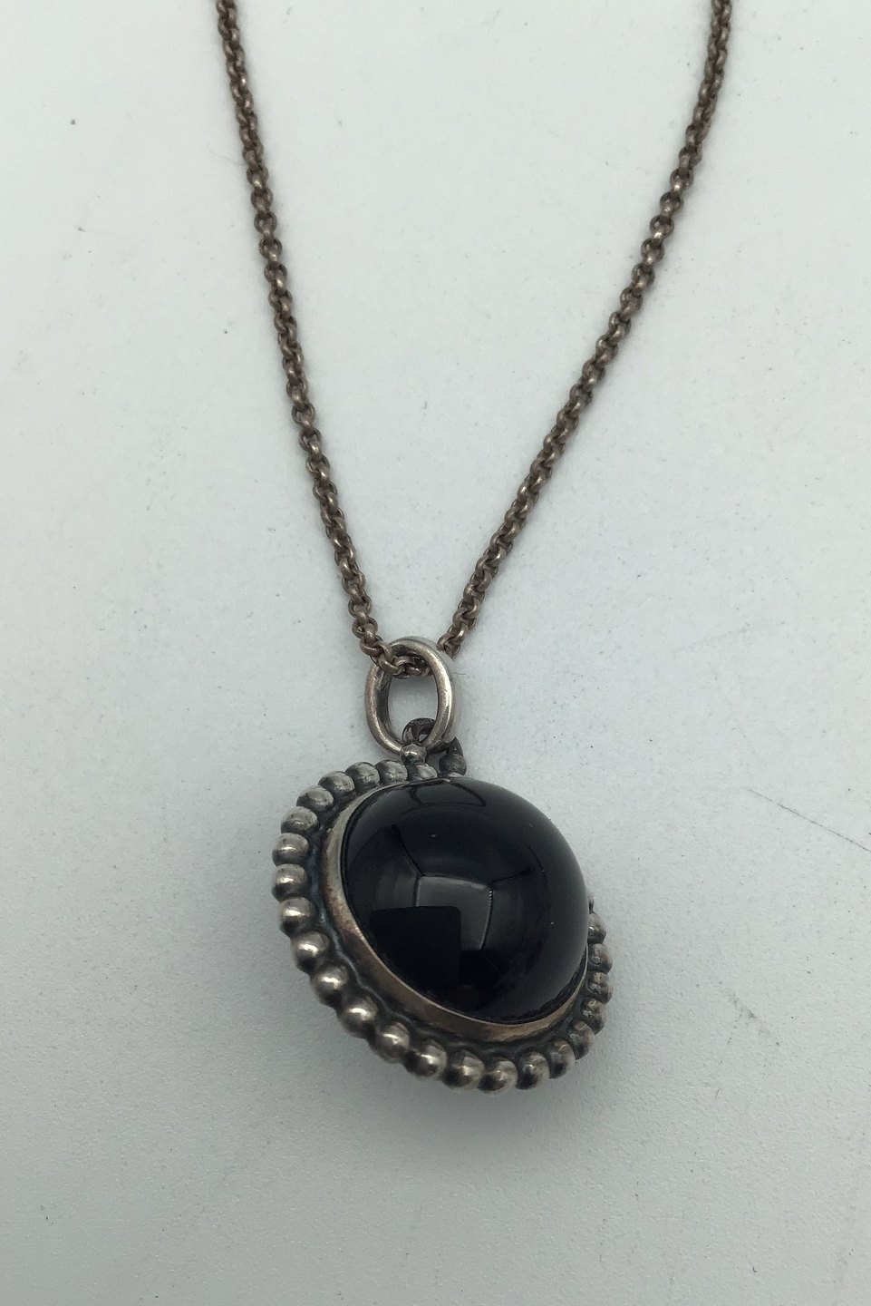 Georg Jensen Sterling Sølv Vedhæng No. 9C (Sort Agat) Måler Kæde 100 cm (39.37 inch) Vedhæng 2 cm (0.78 inch) Samlet vægt 12.8 gr (0.45 oz)