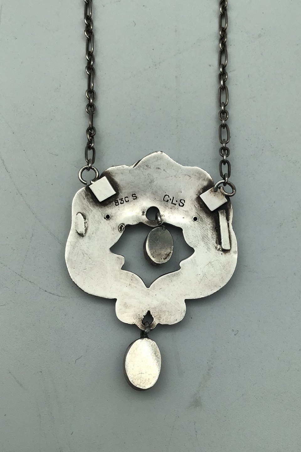C.L. Severin Sørensen Silver Necklace (Amber) Measures Pendant 4.8 cm x 3.5 cm (1.88 inch x 1.37 inch) Chain 44 cm (8.66 inch) (NB Altered from brooch)
