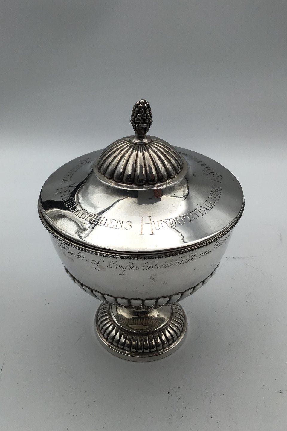 Swedish Silver Lidded Bowl on foot (Prize 1910) Measures H 15 cm (5.90 inch) Diam 10.5 cm (4.13 inch) Weight 166.4 gr (5.87 oz) (Engravings)