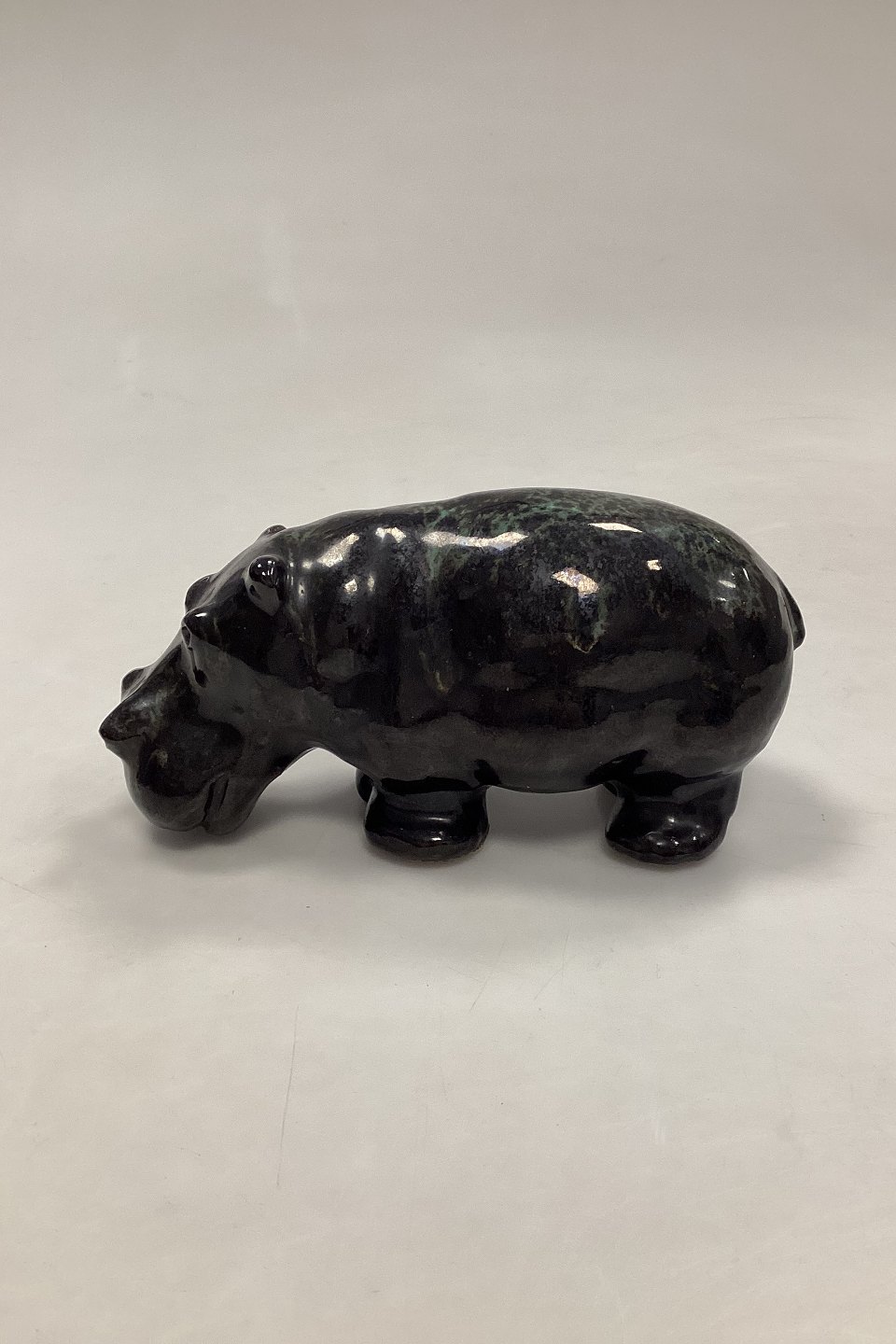Flodhest i Stentøj af Poul Kyhn. Glasering i mørkebrun og grøn.