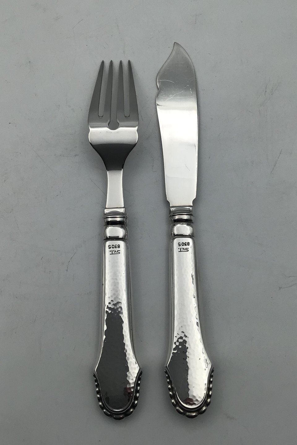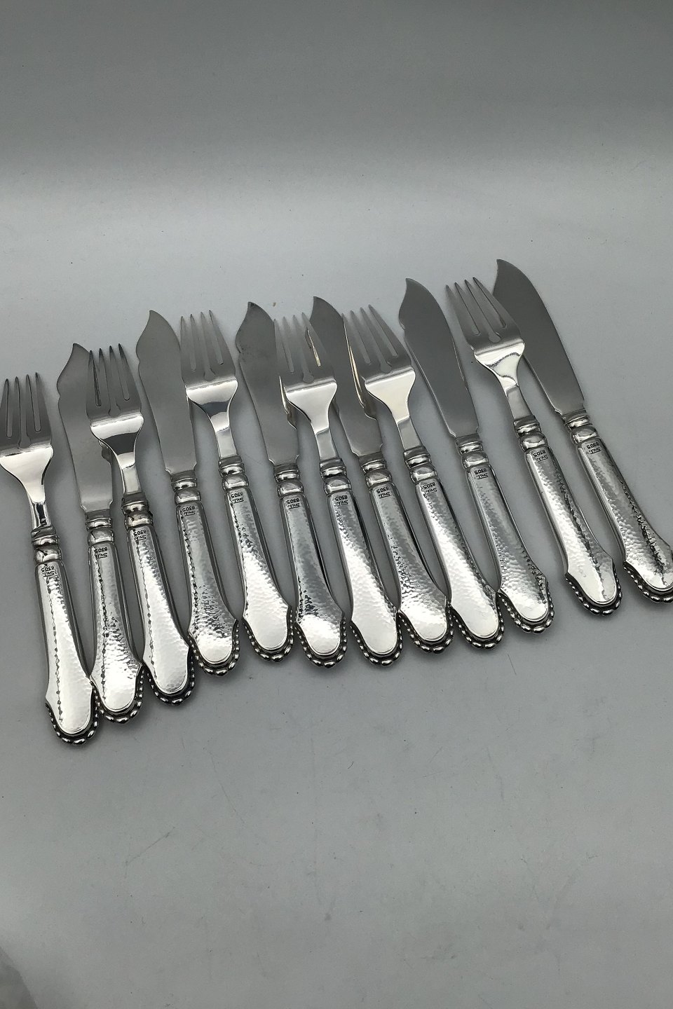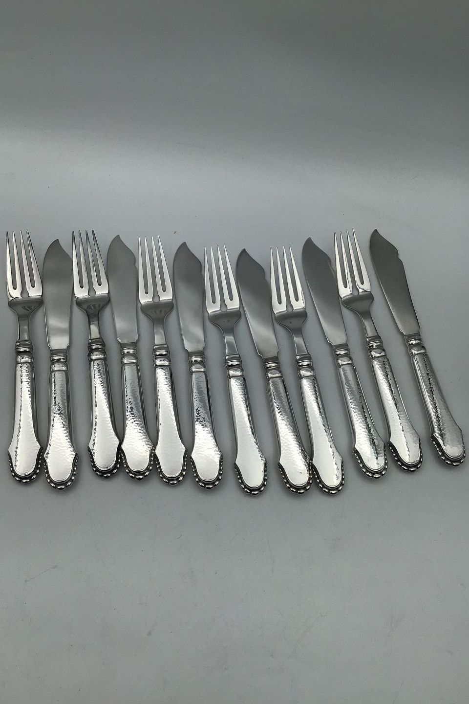 Svend Toxværd Silver Christiansborg Fish Flatware Set 6 people (12 pcs) Measures Fork 18.4 cm (7.24 inch) Knife 19.4 cm (7.63 inch)
