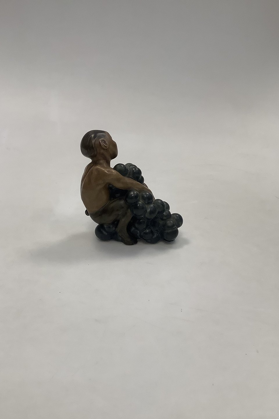 Bing og Grøndahl Figur af Kai Nielsen "Lille Bacchus med druer" No 4027 fra Druehøstserien. Designet i ca. 1915. Måler 11 cm / 4 21/64 inch