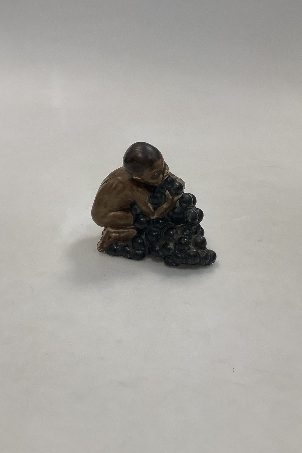 Bing og Grøndahl Figur af Kai Nielsen "Lille Bacchus med druer" No 4021 fra Druehøstserien. Designet i ca. 1915. Måler 9.5 cm (3 47/64 in)