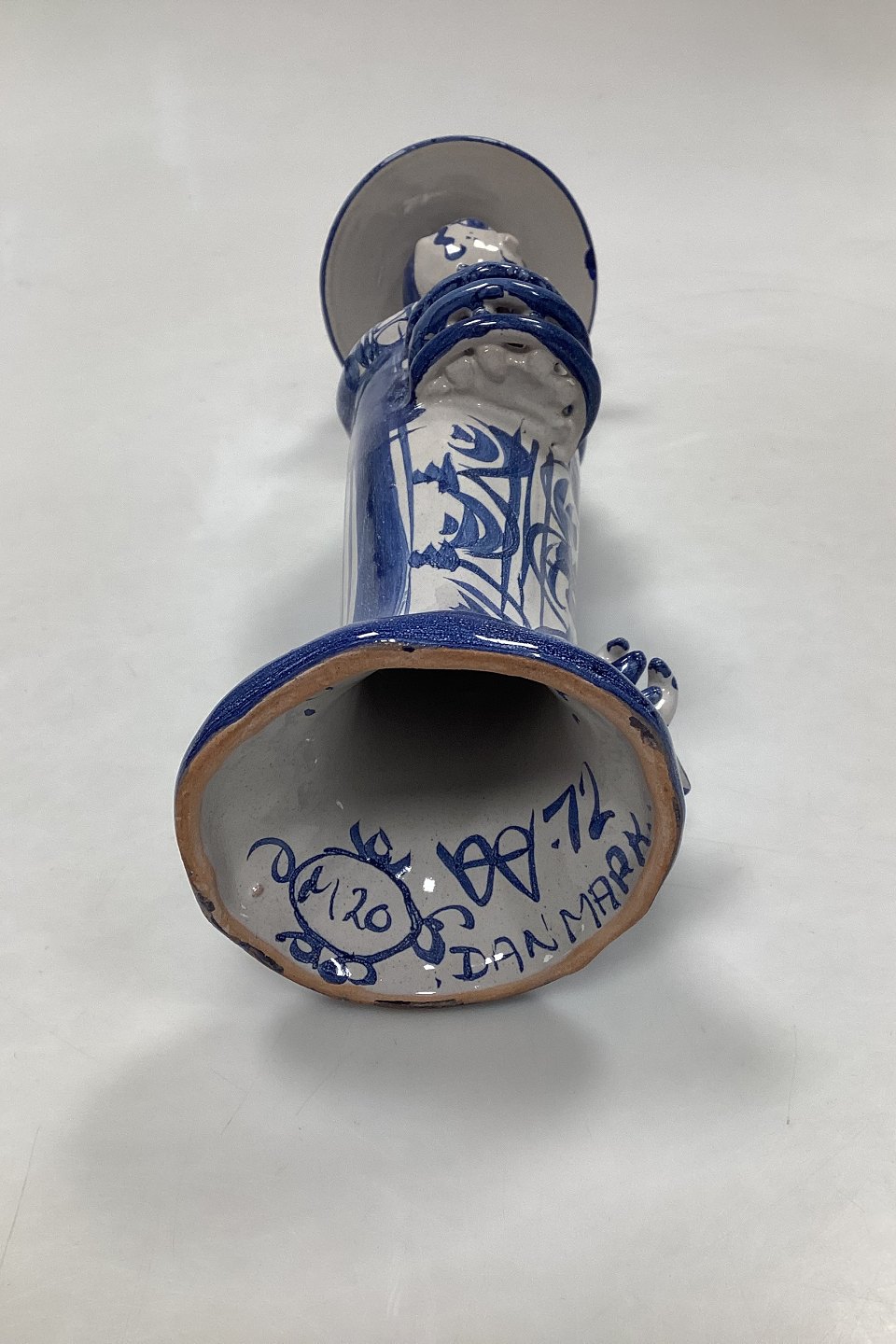 Bjorn Wiinblad figurine from The Four Seasons, Spring No M20. Signed in 1972. Measures 32 cm / 12.6 in. Shows several repairs to head, hat and foot.