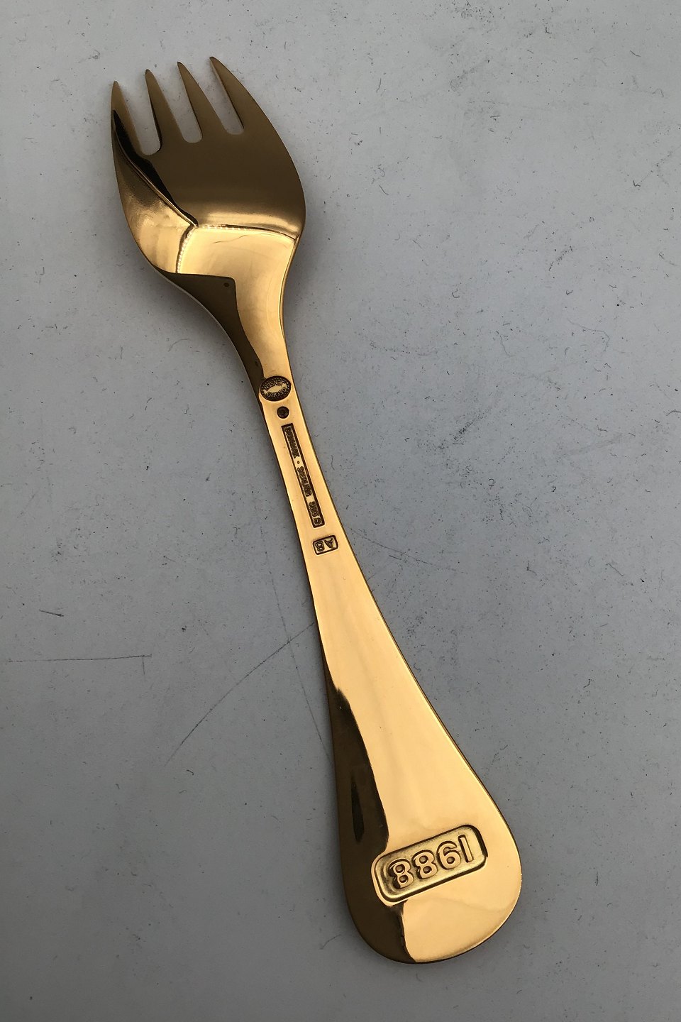 Georg Jensen Årsgaffel 1988 Forgyldt Sterling Sølv med emalje. Måler 14.5 cm (5.70 inch)