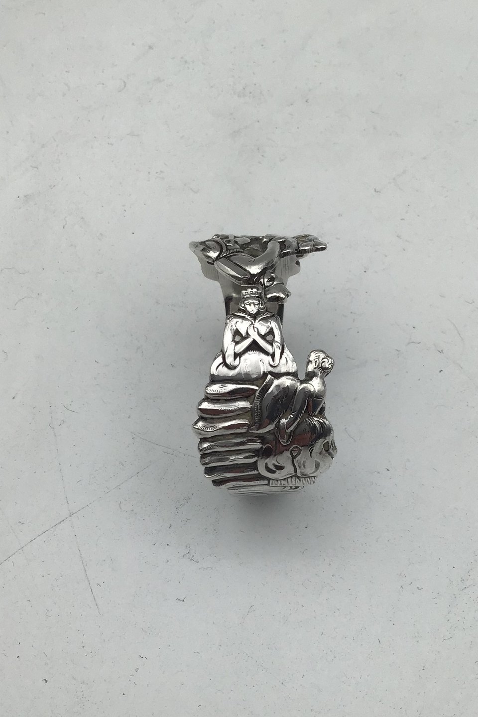 H.C. Andersen Fairy Tale Horsens Silver Napkin Ring Measures 3.7 cm x 4.7 cm (1.45 inch x 1.85 inch) Tinderbox/Princess on the Pea Measures Weight 29.1 gr (1.03 oz)