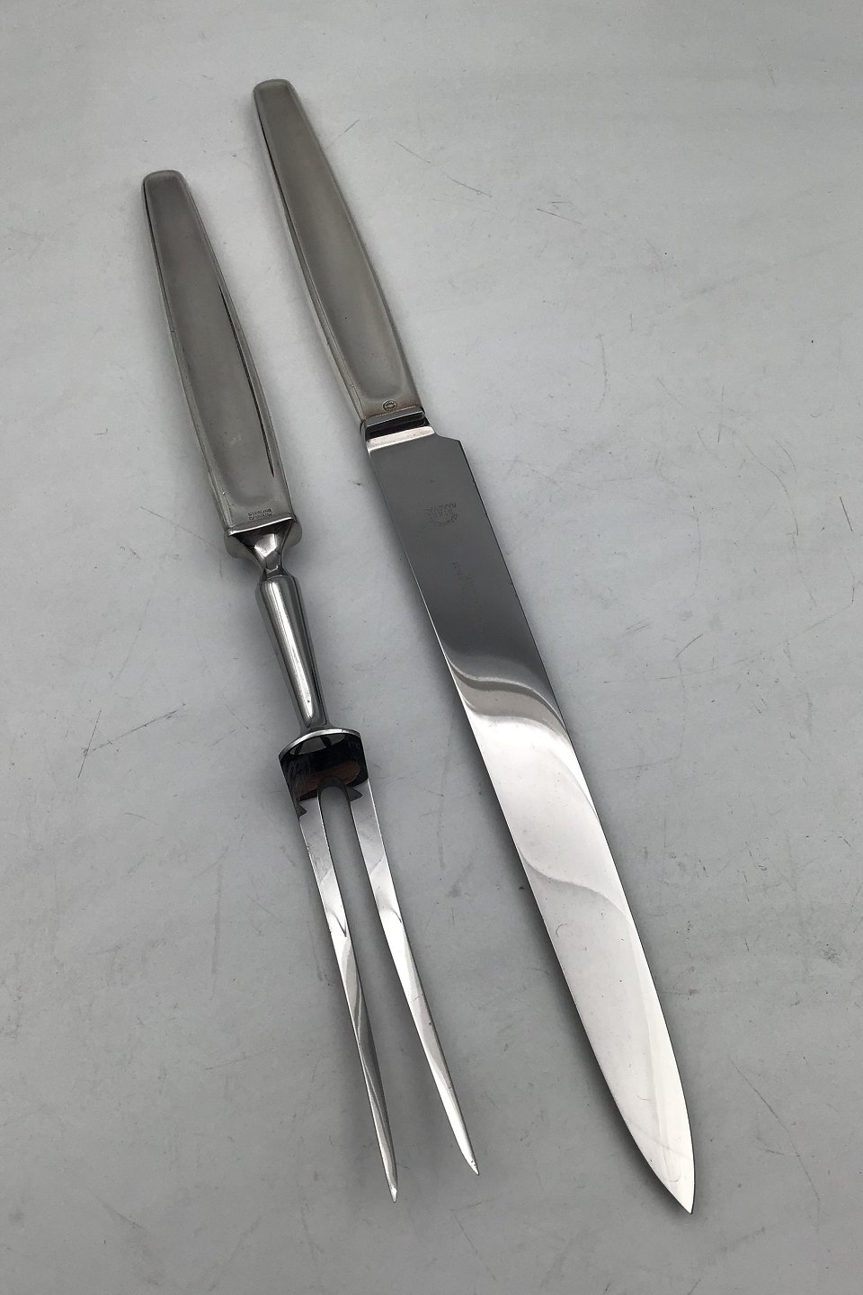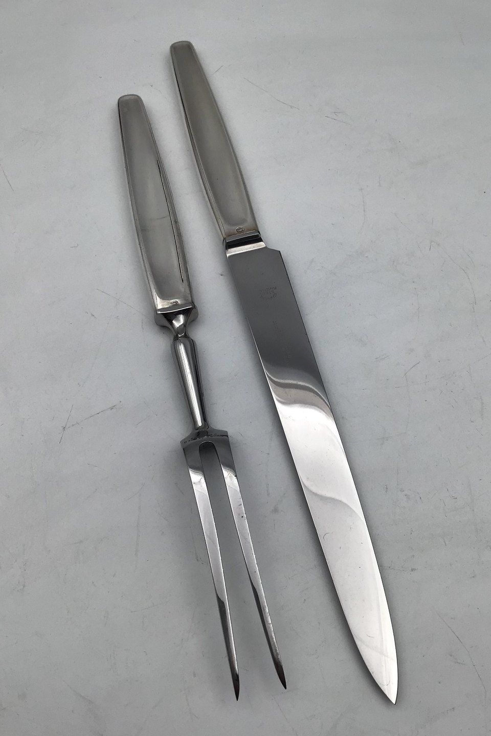 Georg Jensen Sterling Sølv Cypres Forskærersæt No 119A+B Måler Kniv 29.5 cm (11.61 inch) Gaffel 25.5 cm (10.03 inch)