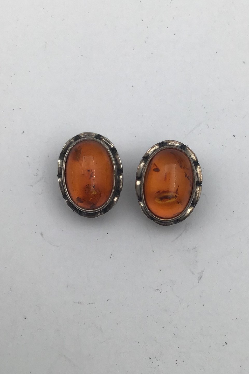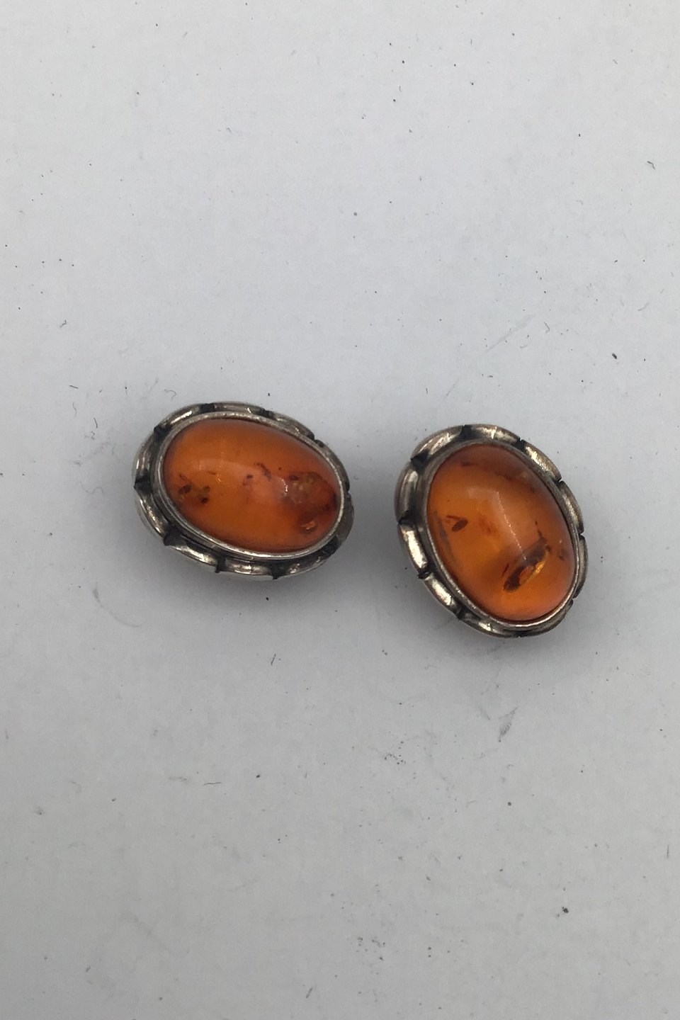 Georg Jensen Sterling Sølv Øreclips Årssmykke 2001 Rav Måler 1.7 cm x 1.2 cm (0.66 inch x 0.47 inch) Samlet vægt 7.7 gr/ 0.28 oz