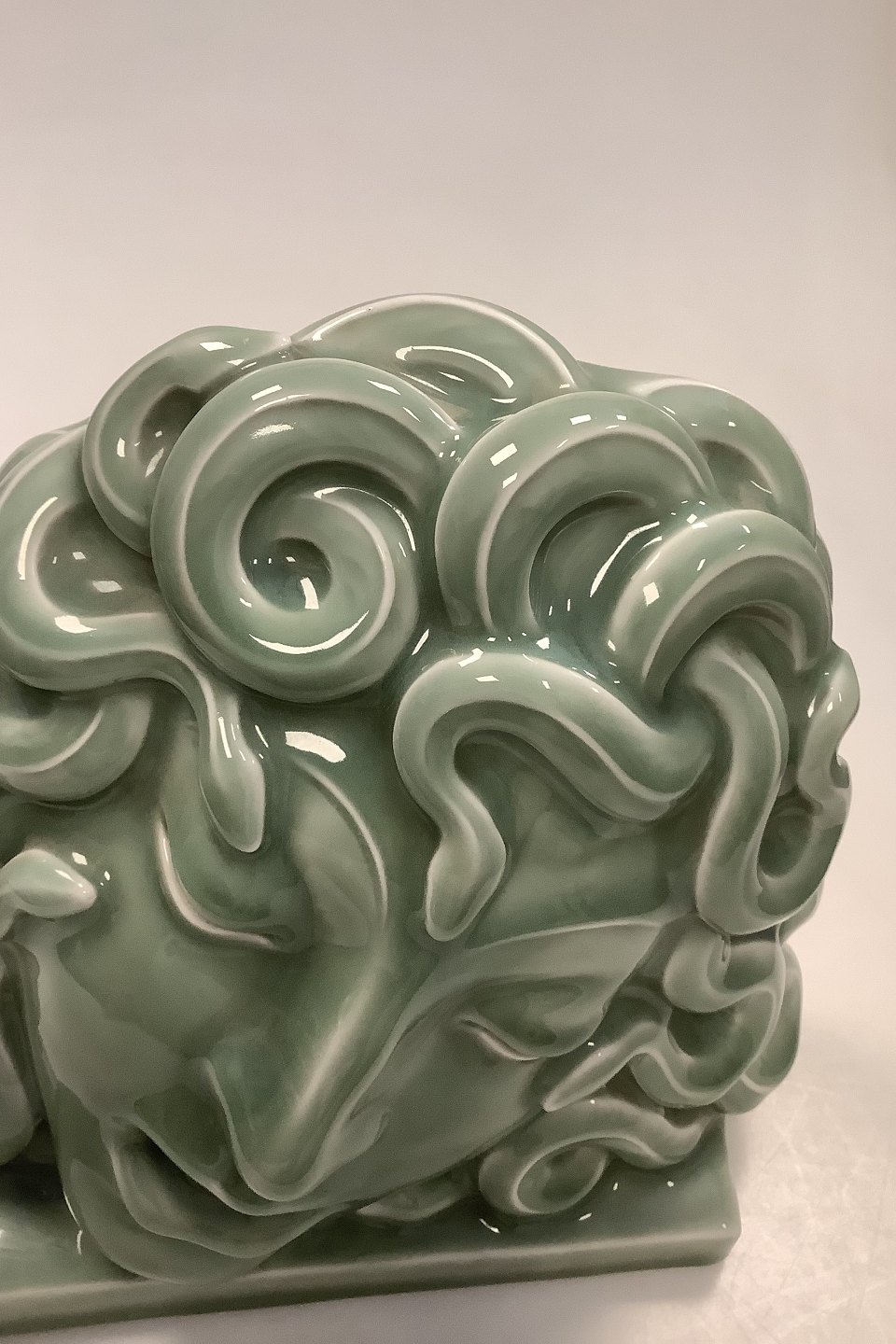 Unique Royal Copenhagen Green Celadon Mask, Medusa, Designed by Hans Henrik Hansen 1927, No 2950.