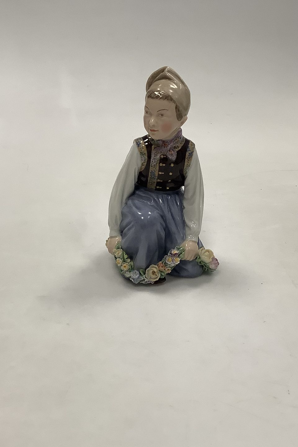 Royal Copenhagen Overglasur Figur Amager Dreng nr. 12414. Måler 15cm(5 29/32 in) Har reparation ved hoved. Se venligst detalje foto.
