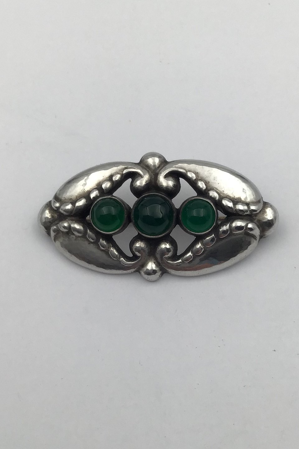 Georg Jensen Sterling Sølv Broche No. 156 Grøn Agat