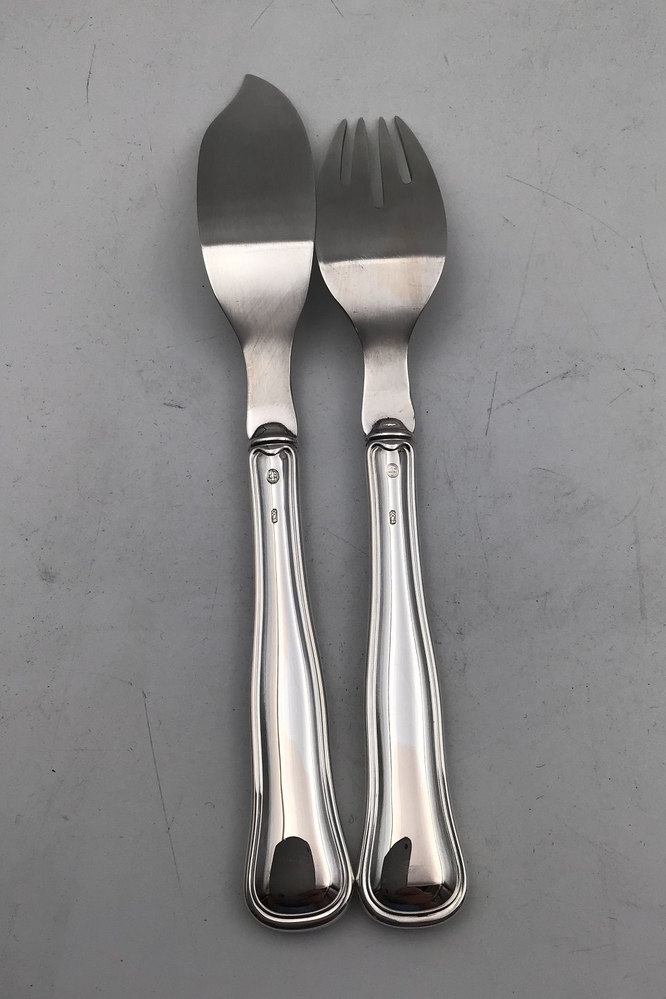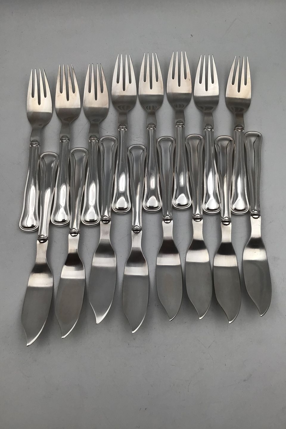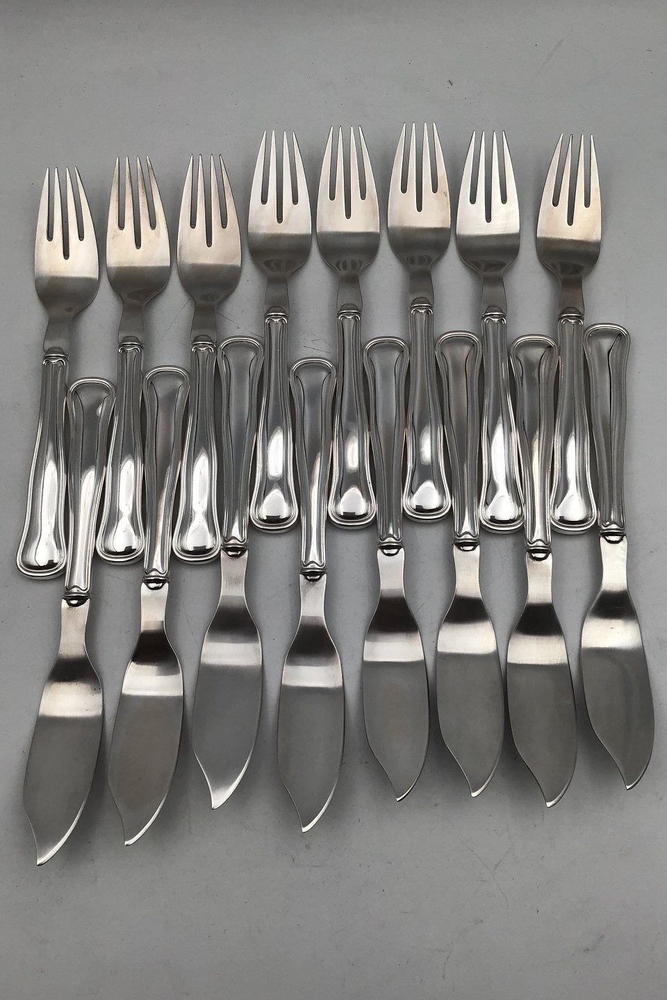 Cohr Silver/Steel Dobbeltriflet Fish flatware Set (16 pcs) Measures 8 Fish Forks 18.5 cm (7.28 inch) 8 Fish Knives 20 cm (7.87 inch)