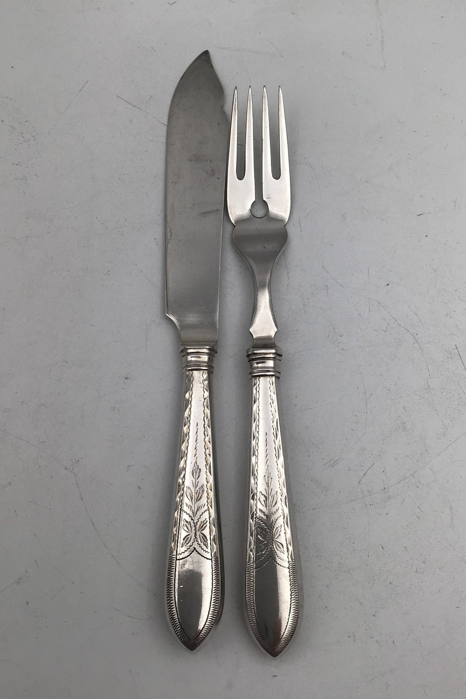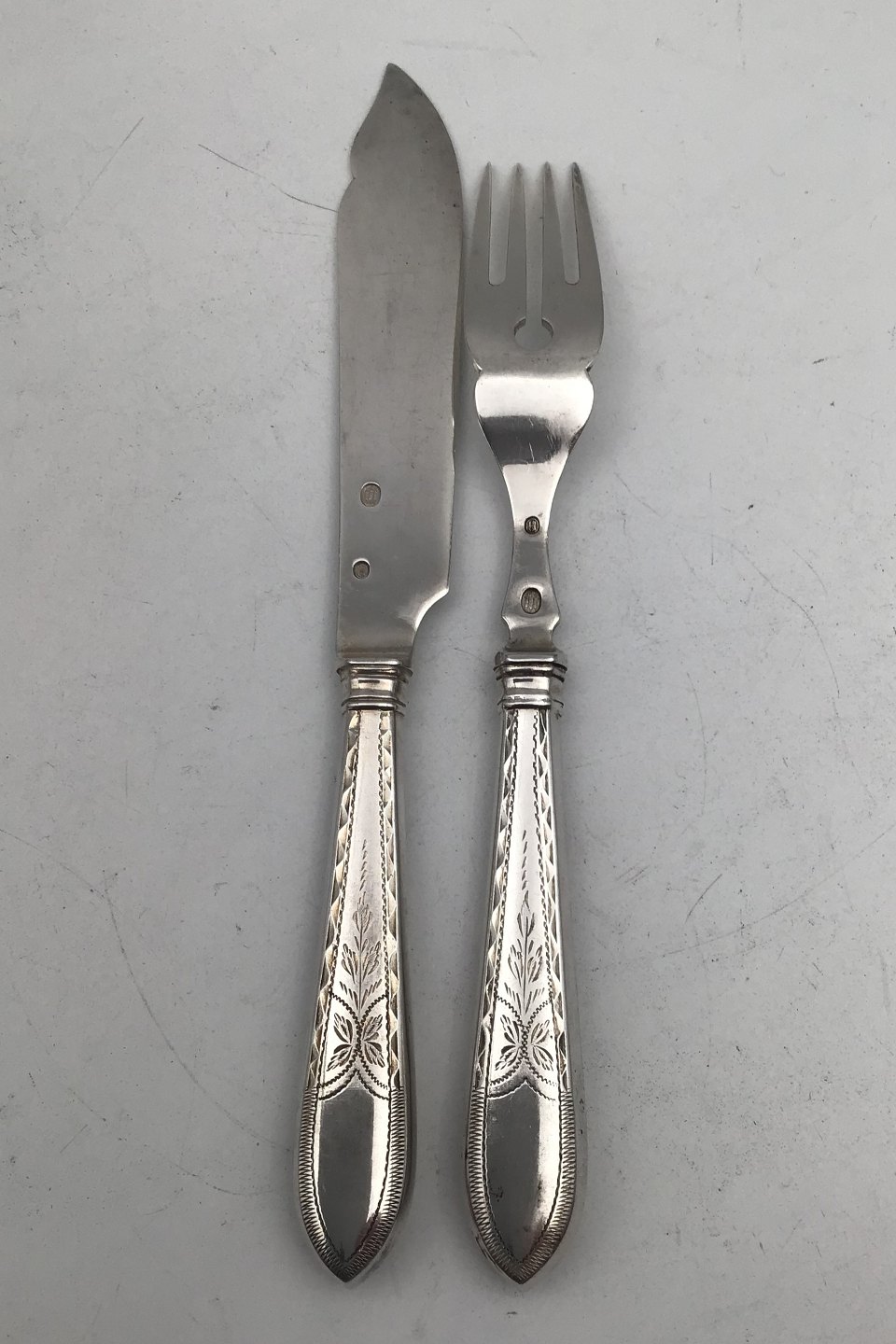 Dansk Empire Sølv Fiskebestiksæt (12) Måler Gaffel 19 cm (7.48 inch) Kniv 21 cm (8.26 inch) (helsølv)