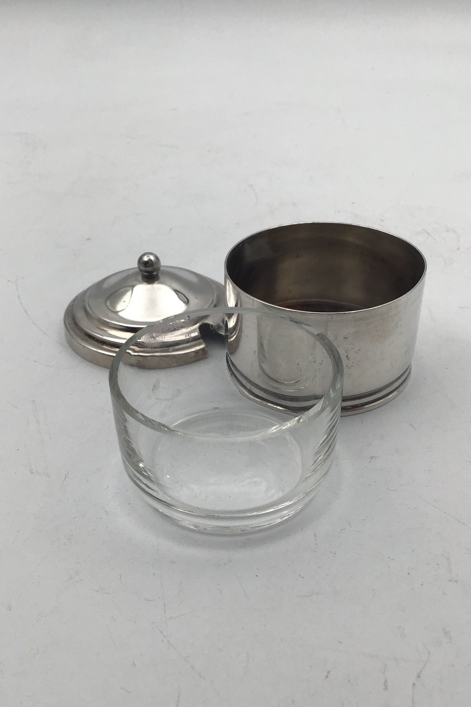 Sølv Salt kar med låg Måler Diam 4.9 cm (1.92 inch) H 4.5 cm (1.77 inch) Vægt m glasindsats 70 gr ( 2.46 oz)