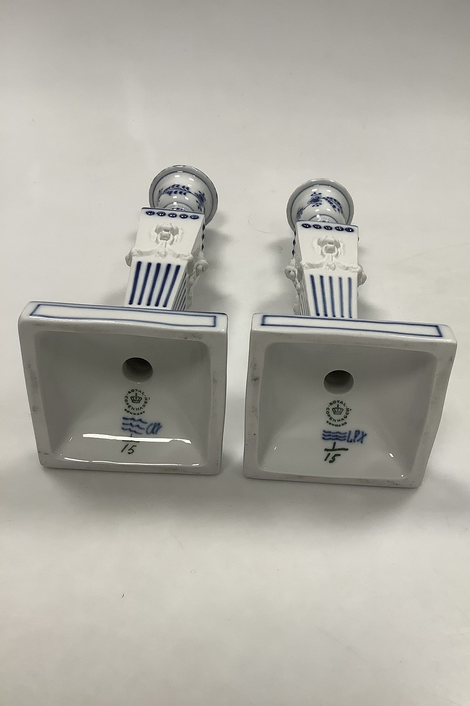 Royal Copenhagen Blue Fluted Plain A pair of Candle Holders No 15. 3rd Quality. Measures 22.5 / 8 55/64 in.