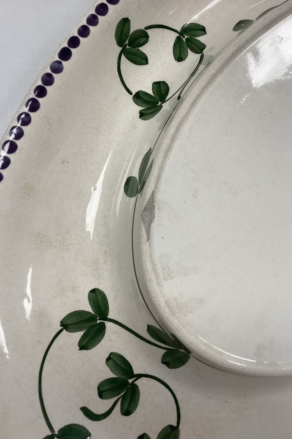 Aluminia Guldregn (Laburnum) Oval Terrine Dish No. 10/235. Measures 42 cm x 28 cm / 16.54 in. x 11.03 in. Two chips on the podium in the middle. Designed by Harald Slott-Møller 1902