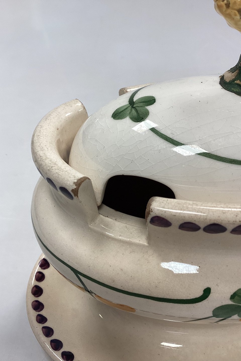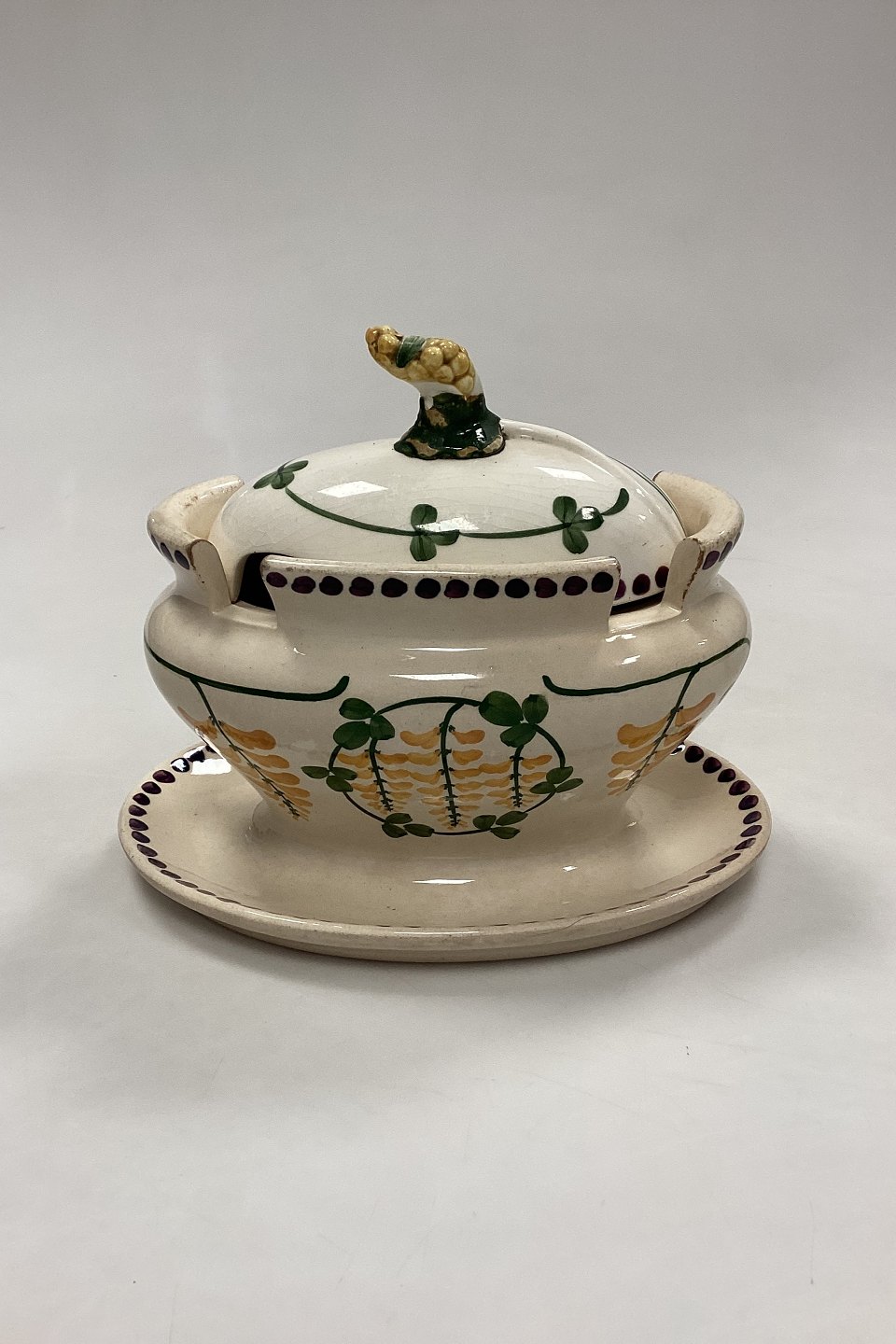 Aluminia Guldregn (Laburnum) Sauce Bowl on fixed base and with lid No. 10/298. Lighter wear, and repair of the handle on the lid.