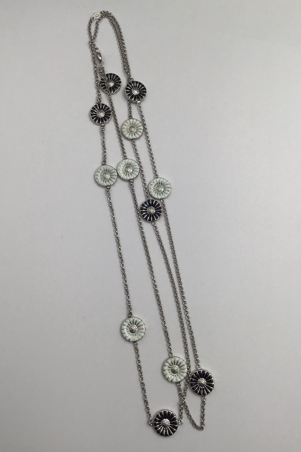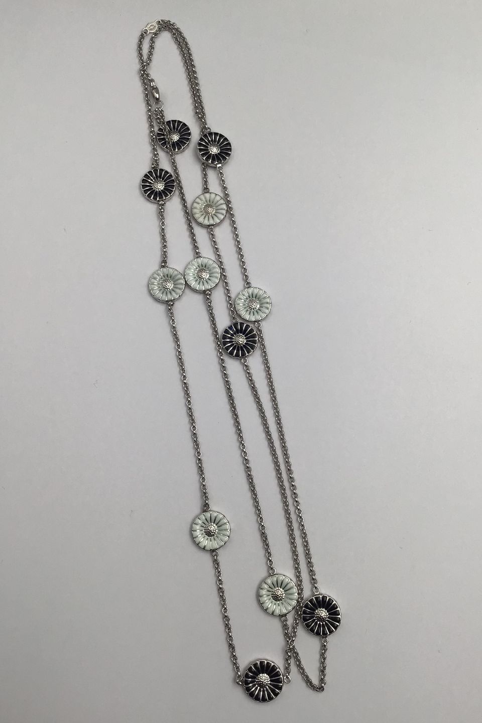Georg Jensen Sterling Silver Gilt Daisy Necklace Black / White Enamel