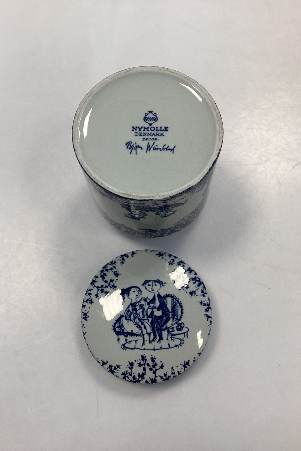 Bjørn Wiinblad Nymølle Bonbonniere No. 3043. Blue decoration.