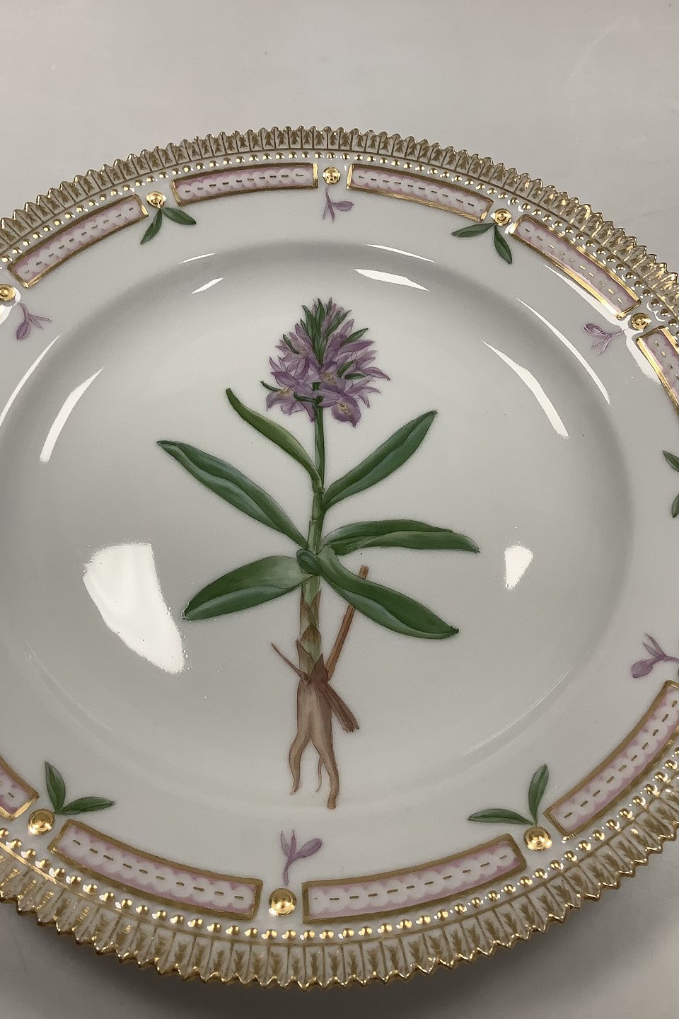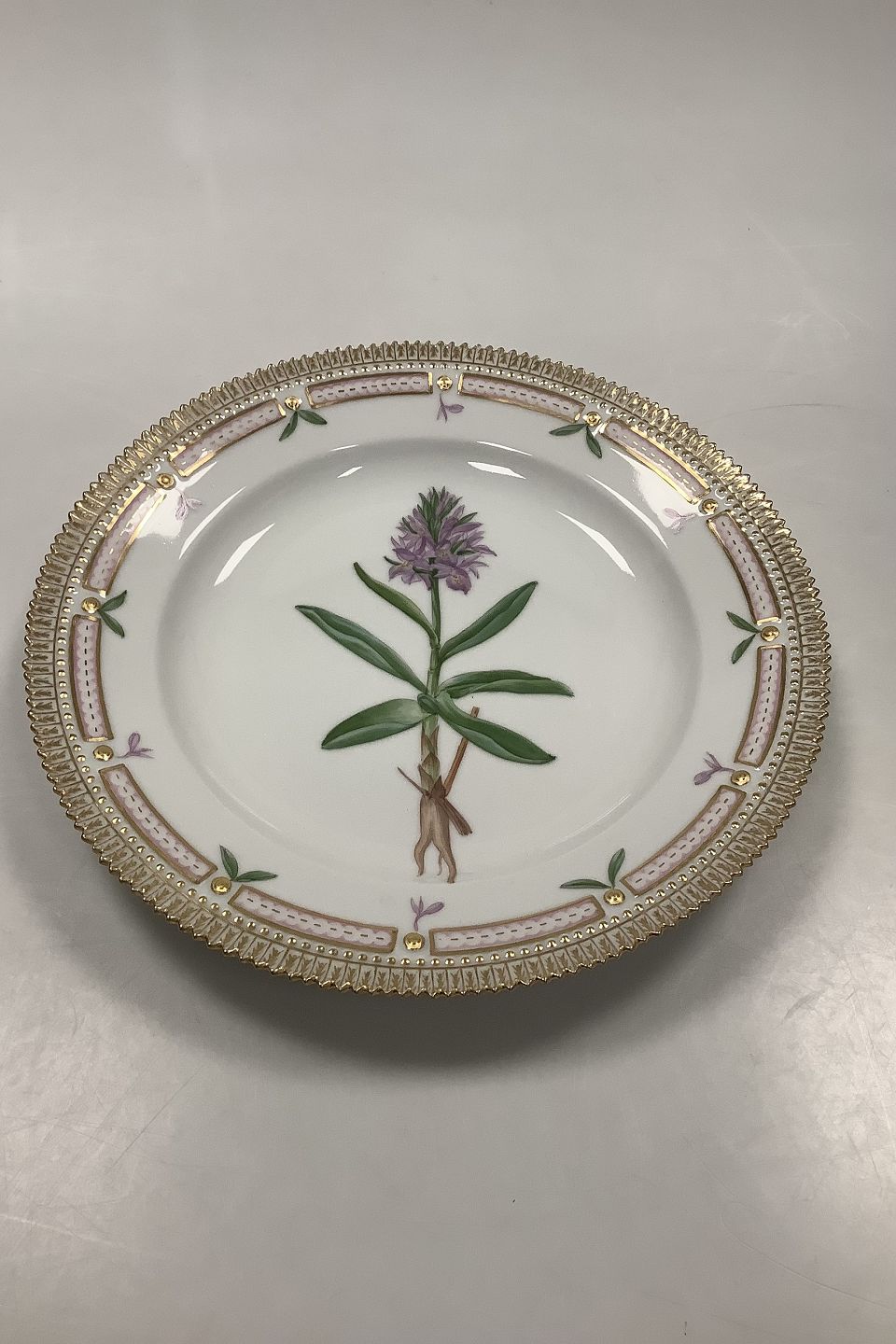 Royal Copenhagen Flora Danica Dinner Plate No. 624 (20/3549) Measures Diam 26 cm. (10.23 inch) 1. Quality. Latin Name: Orchis Sambucinus L. y. incarnatus
