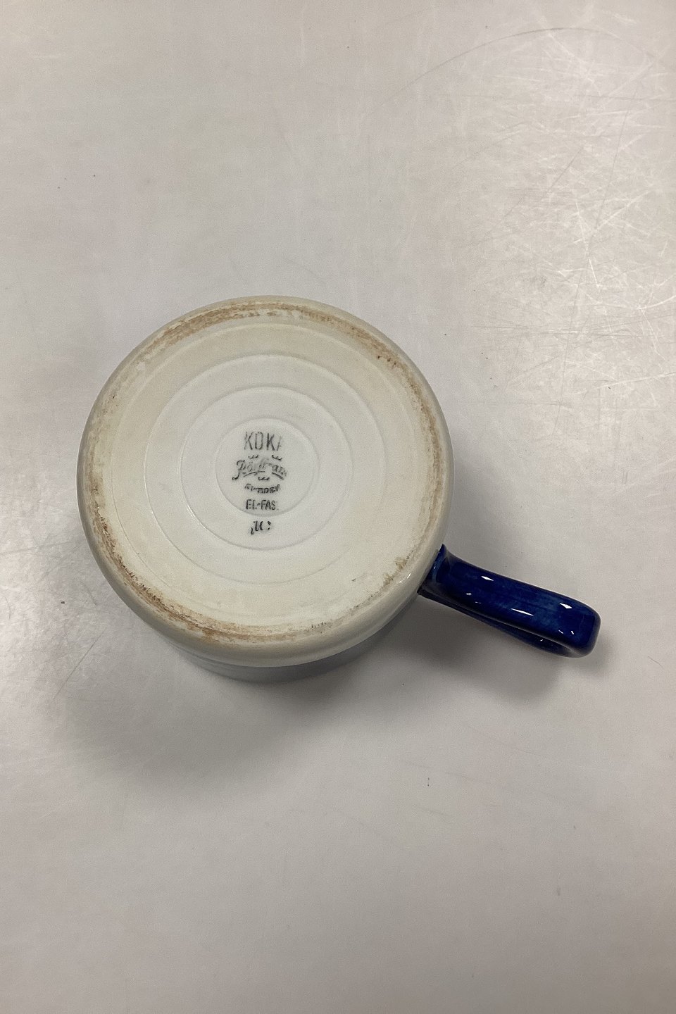 Rørstrand Blå Koka Skål med Hank. Måler 12,5 cm / 4.93 in. i diameter x 9,5 cm / 3.75 in.