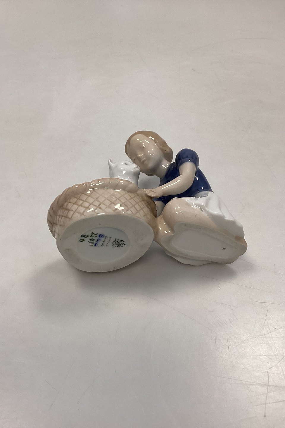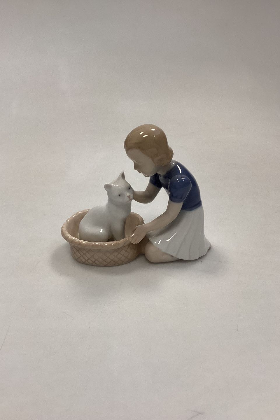Bing and Grondahl Figurine Girl with Cat - Friends No. 2249. Measures 10 cm / 3.94 in. and is in good condition. Designed by Claire Weiss.