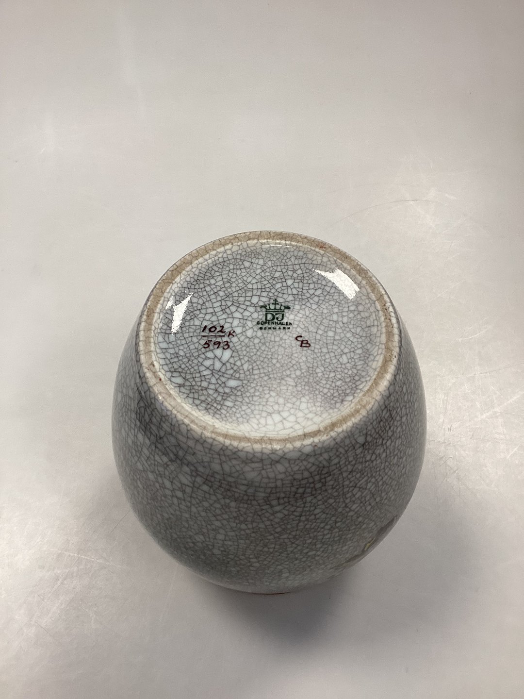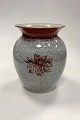 Dahl Jensen Krakelé Vase No. 102/593. Dekoration i sienarød, hvid og guld. Måler 20,5 cm / 8.08 in. i højden.