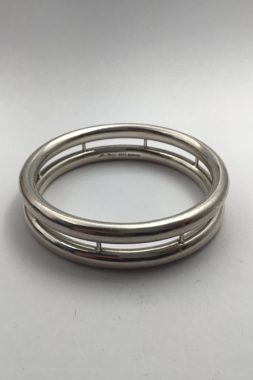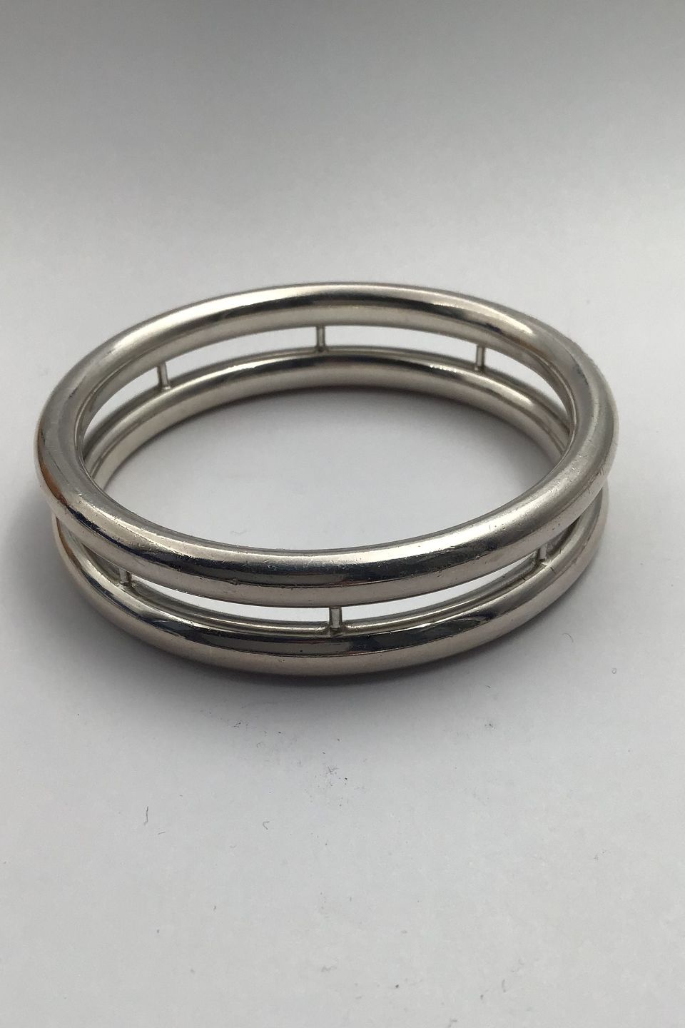 Hans Hansen Sterling Silver Modern Double Bracelet / Bangle Measures Diam inside 6.4 cm (2.51 inch) Width 1.7 cm (0.66 inch) Weight 57.5 gr (2.03 oz)