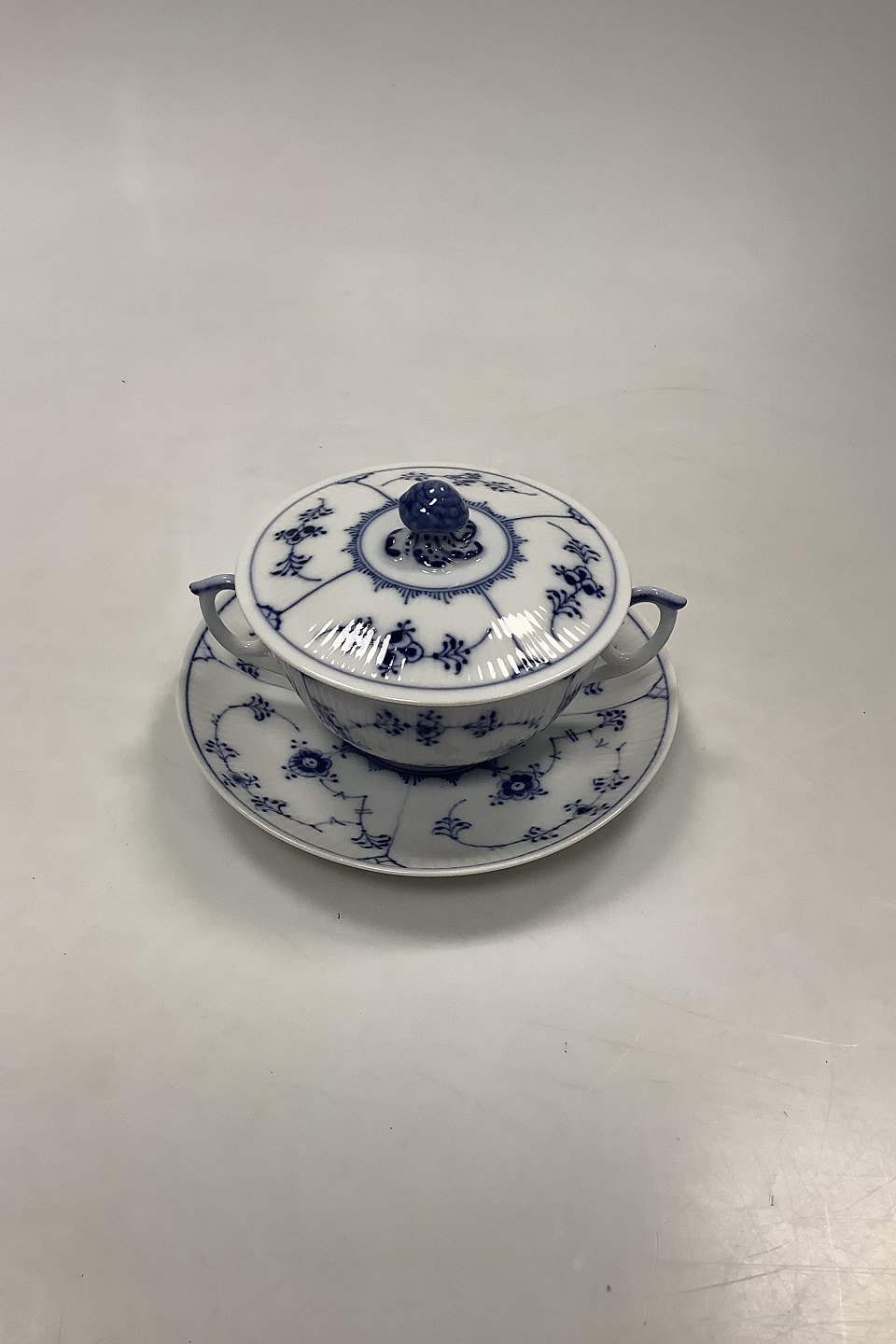 Royal Copenhagen Musselmalet Riflet Bouillon Kop med Underkop No. 2199. 11 cm diameter. 2. Sortering.
