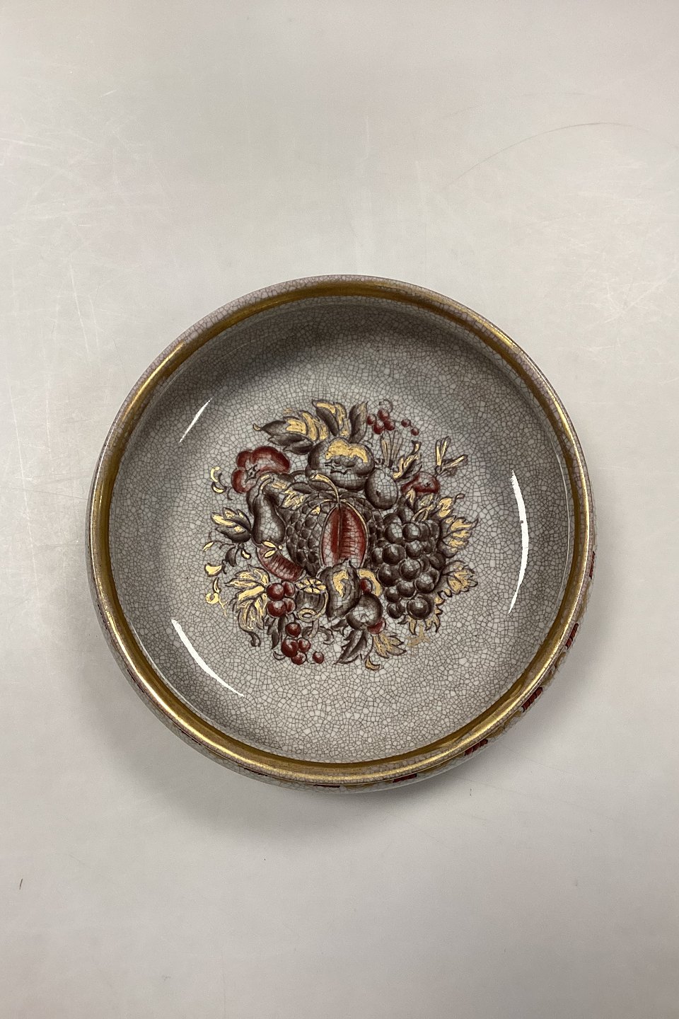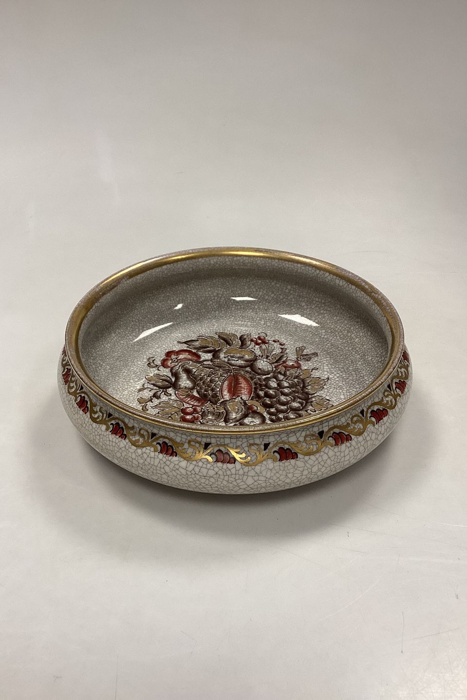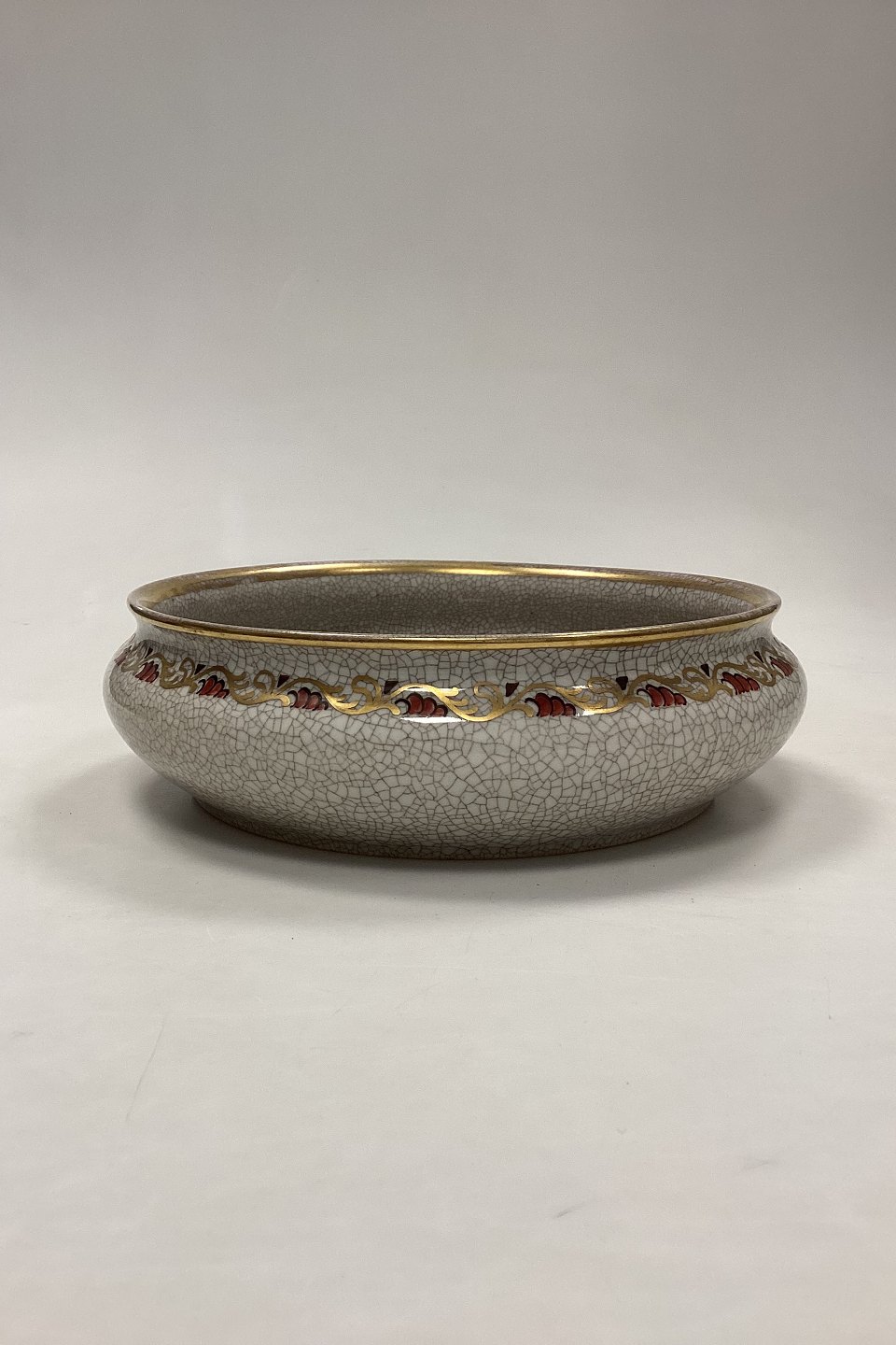 Dahl Jensen Cracked Bowl No. 108/162. Decoration in siena red, white and gold. A lot of wear on the gold rim. Unique copy painted by Arthur Boesen. Measures 23.5 cm x 7 cm / 9.25 in. x 2.75in.