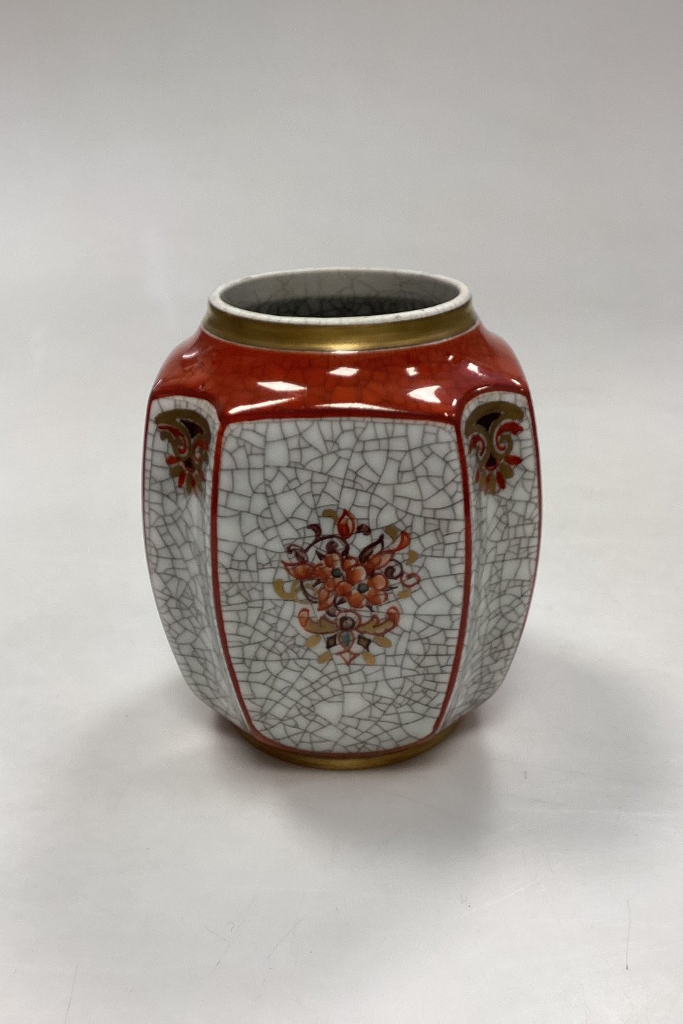 Dahl Jensen Craquelé Vase No. 196/600. Dekoration i sienarød, grøn, hvid og guld. 2. Sortering.