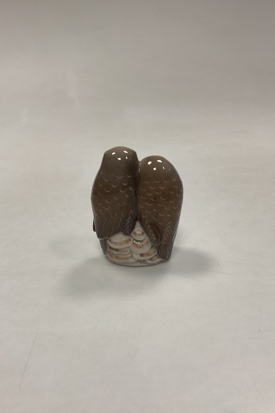 Royal Copenhagen Figur - Uglepar No. 077 eller 834. Designet af Th. Madsen i 1907. Måler 9 cm x 7 cm / 3,54 in. x 2,75 in. 3. Sortering.